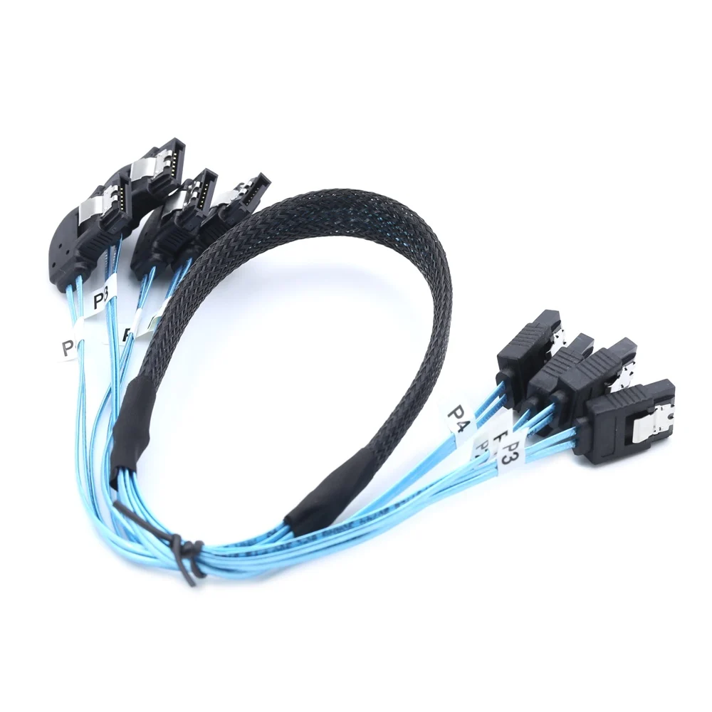 Cable de conexión de placa base de ordenador de datos SSD de ángulo recto hembra de 7 pines SATA a 4 puertos SAS 4,0 duradero
