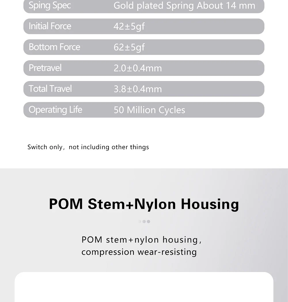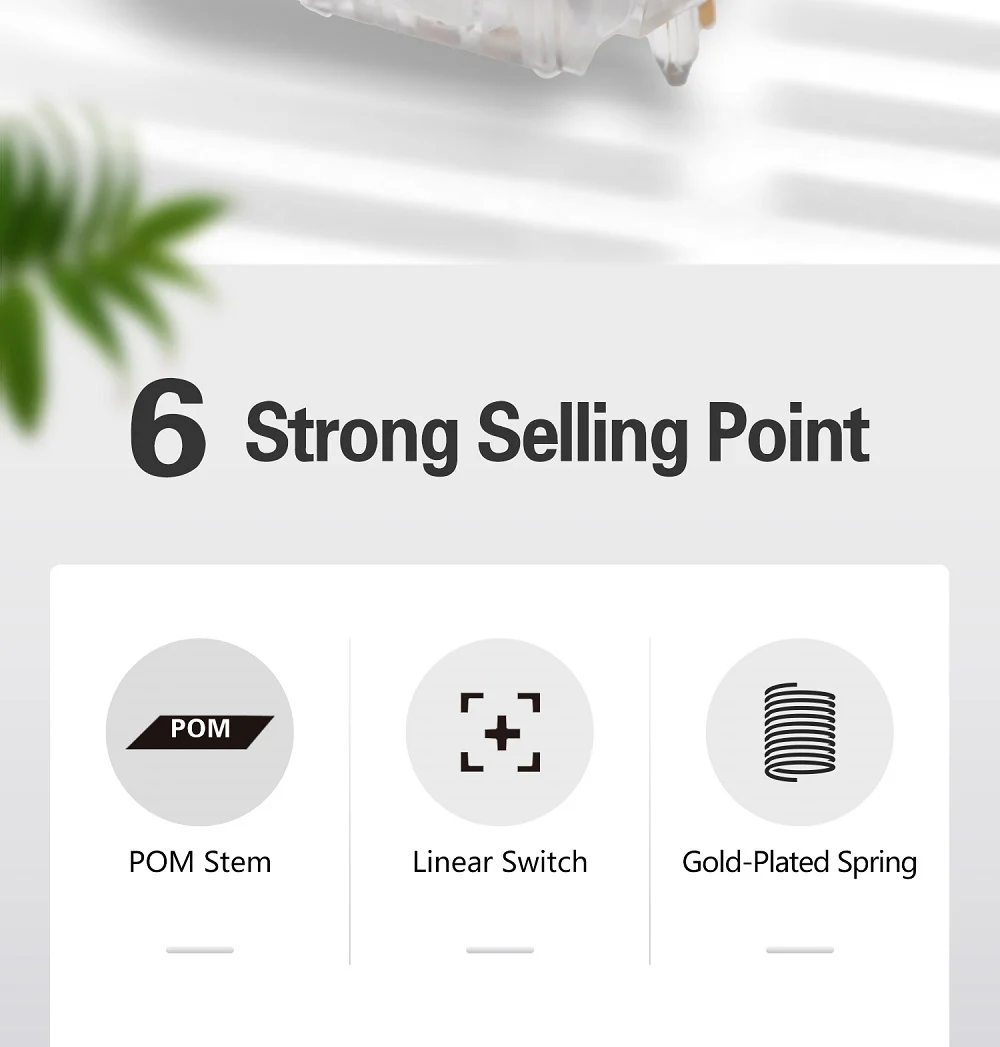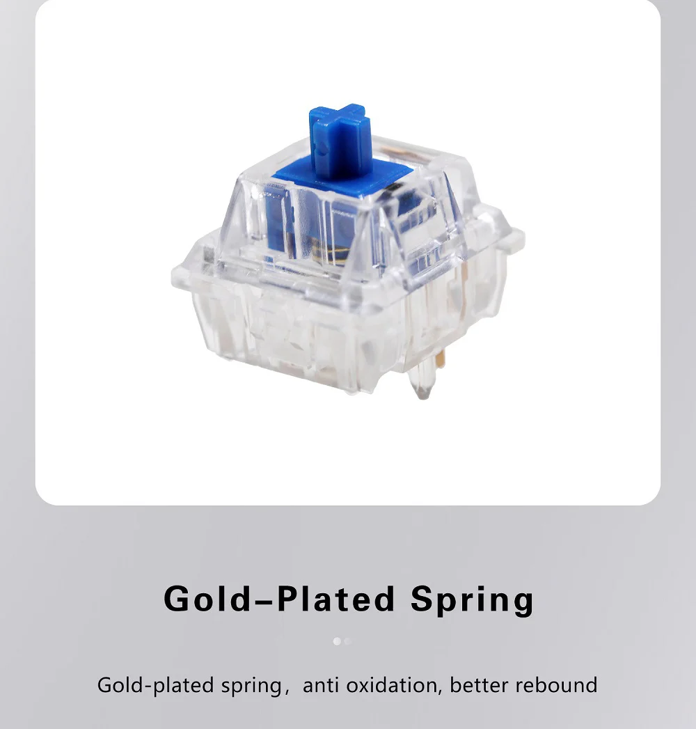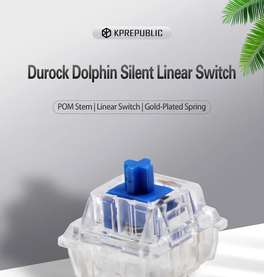 DUROCK-Interruptores lineales silenciosos chapados en oro Dolphin Spring, eje silencioso de charol azul clásico, 5 pines, interruptor de tecla lineal para bricolaje, 62g