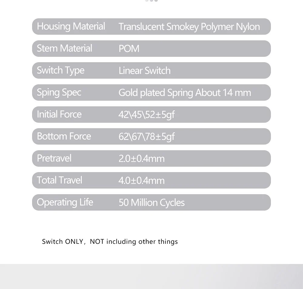 Comprar DUROCK-Interruptores lineales translúcidos Smokey L7, dispositivo con resorte chapado en oro, eje negro liso, 5 pines, 62g, 67g, 78g