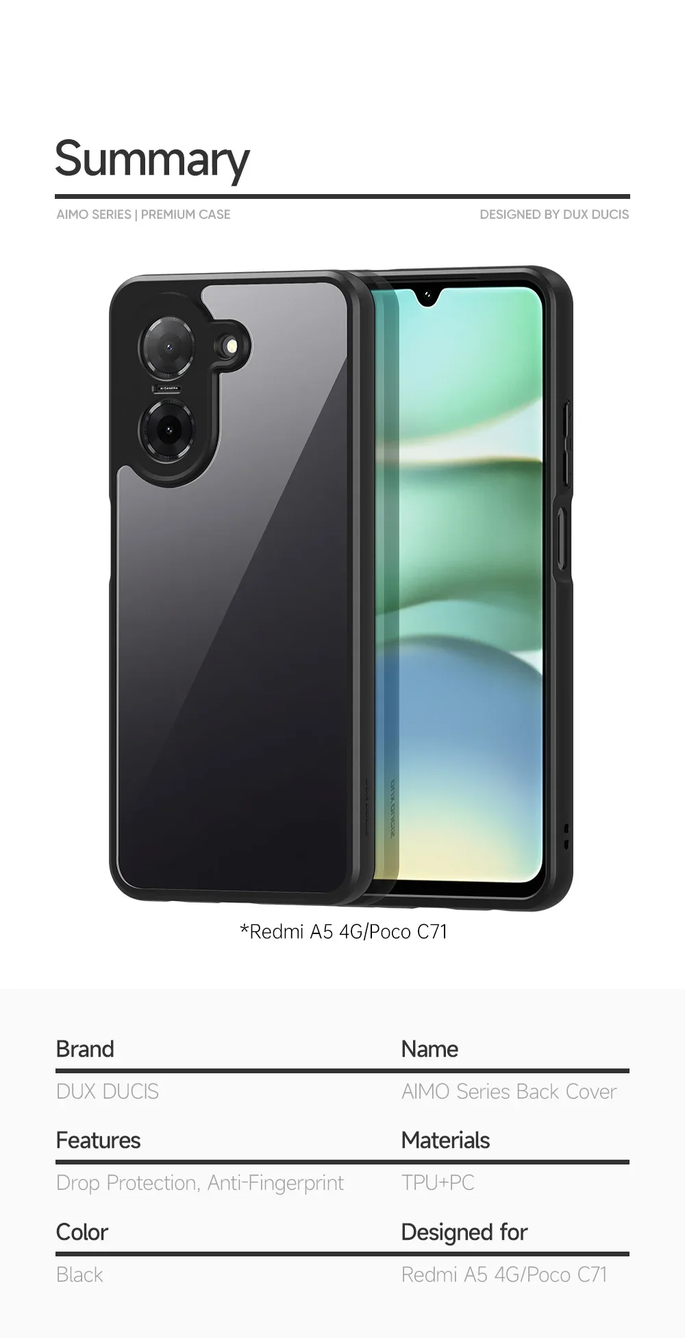 Comprar DUX DUCIS para Xiaomi Poco C71 Airbag militar funda anticaída para Xiaomi Poco C71 acrílico a prueba de golpes armadura contraportada