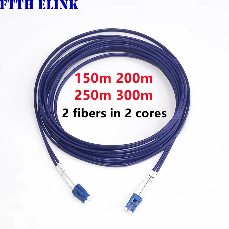 Comprar DX cable de conexión de fibra blindada, 2C cable óptico de 3mm, doble SM SC LC FC ftth jumper, 2 núcleos, modo único a prueba de trinquete, 150m200m250m300mtr