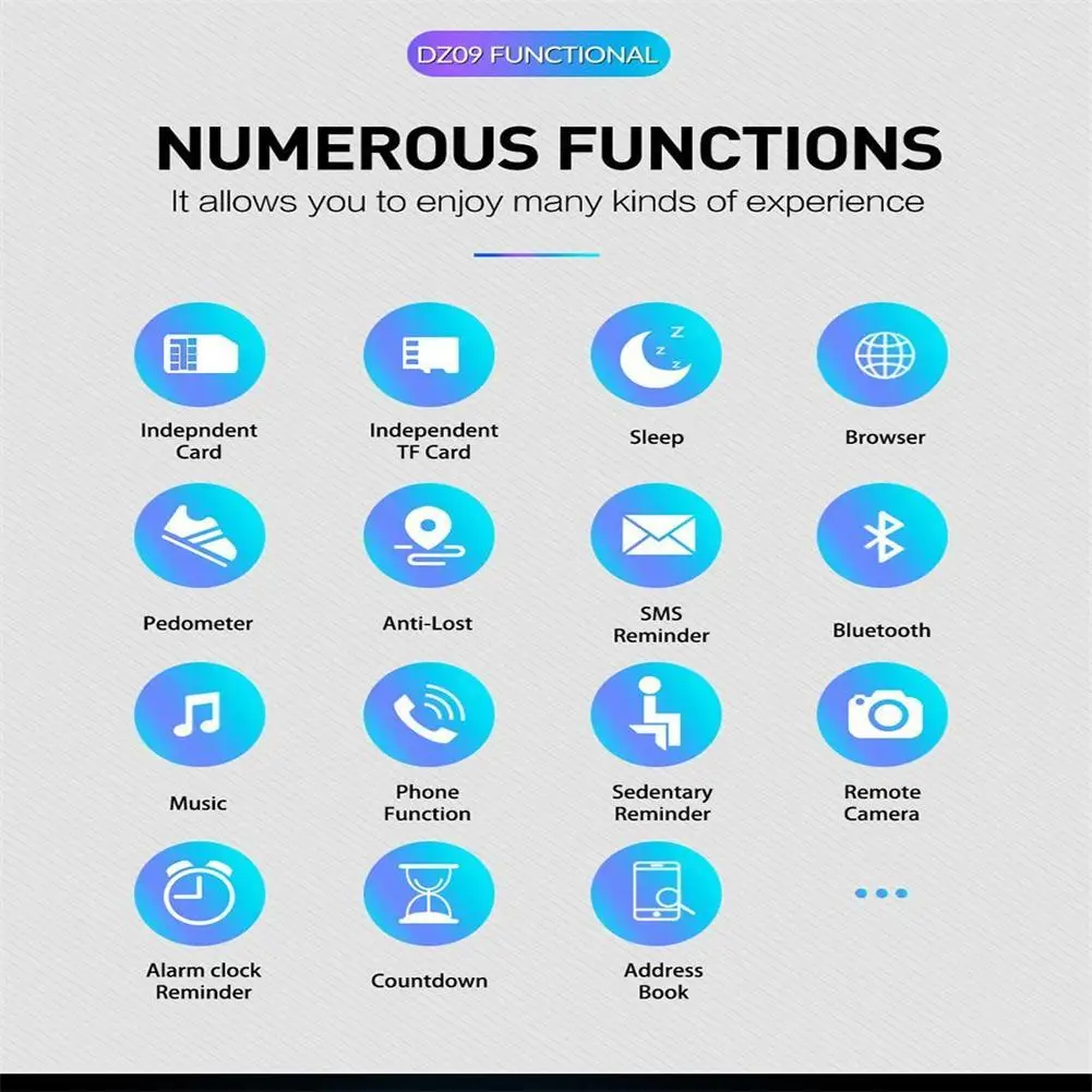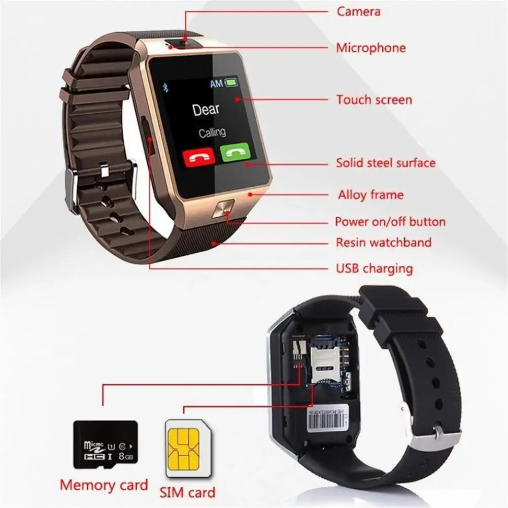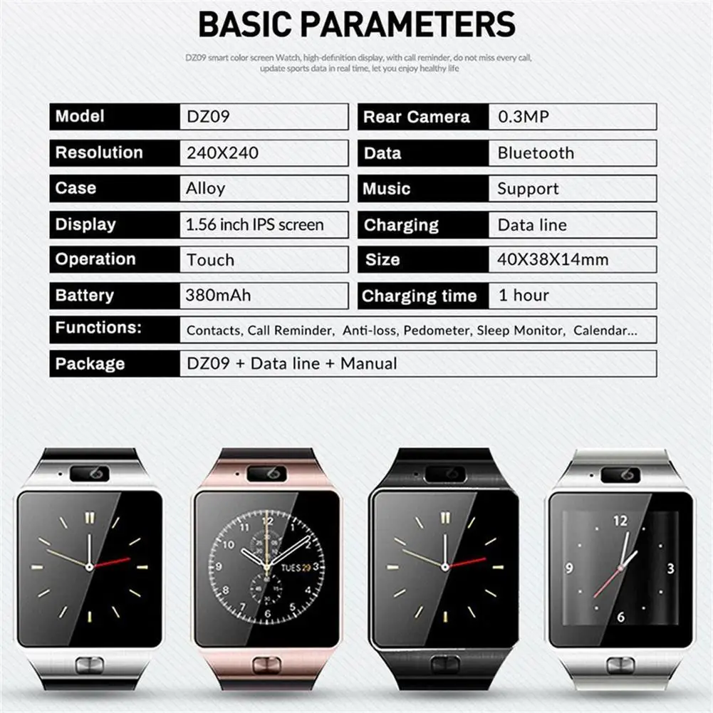 Comprar DZ09 reloj inteligente con pantalla táctil para hombre y mujer, Smartwatch deportivo con Bluetooth, cámara, compatible con tarjeta SIM, despertador