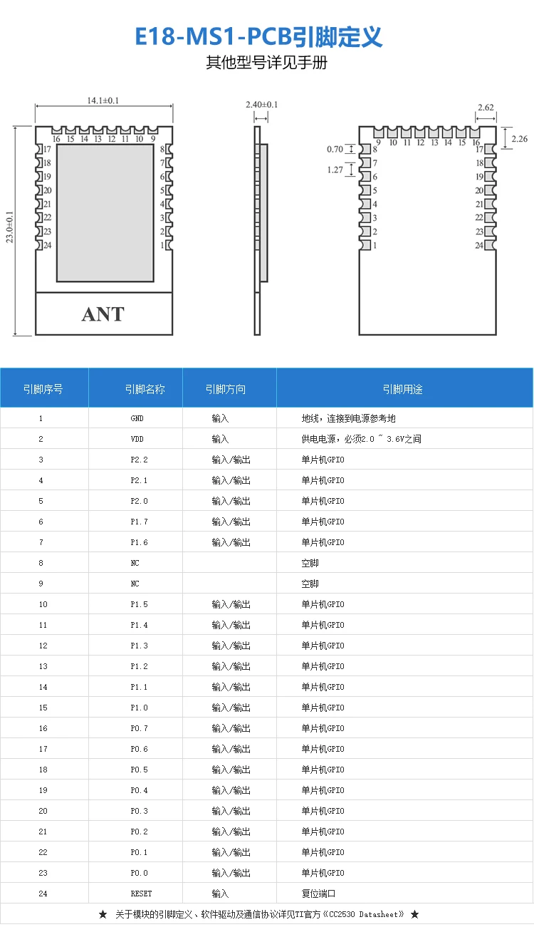 E & M-Módulo de 100m CC2530F256 ZigBee 2,4 GHz, Kit DIY, placa de desarrollo Ti CC2530, bateador de E18-MS1 para casa inteligente nRF24L01P IEEE 802.15.4