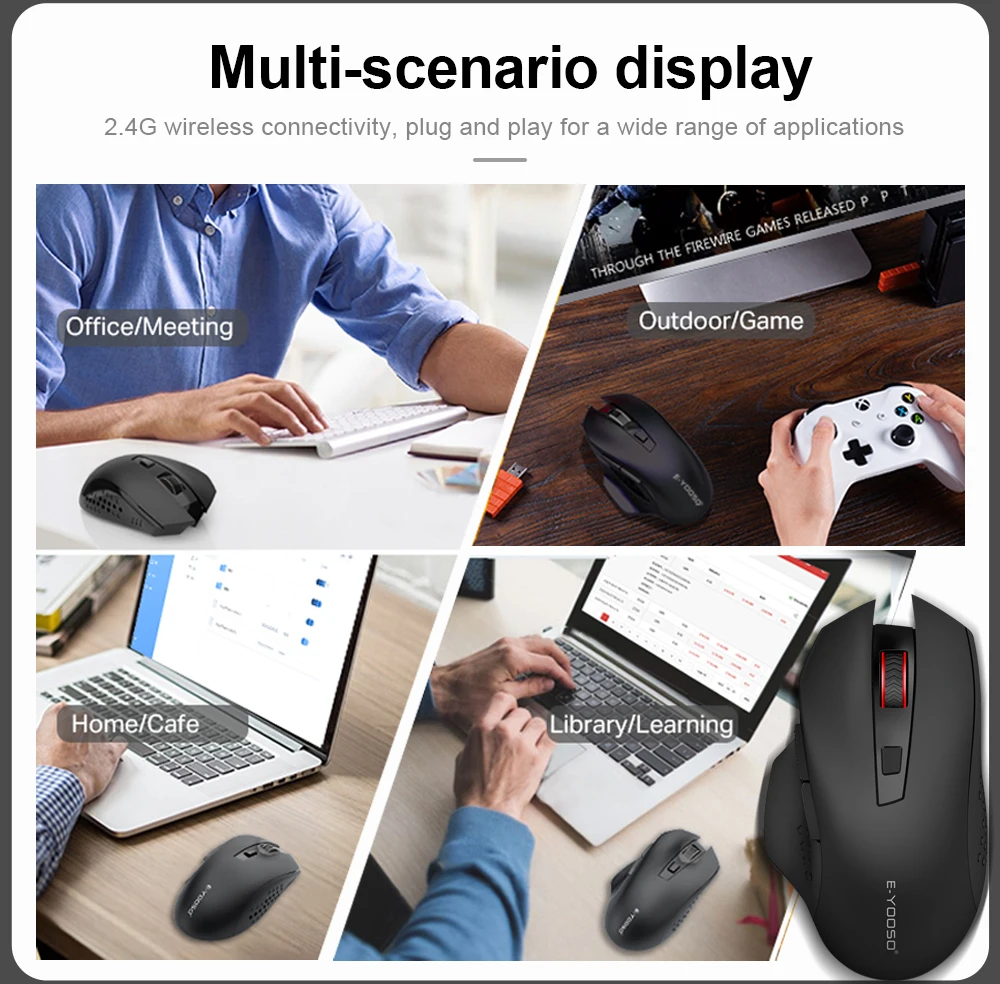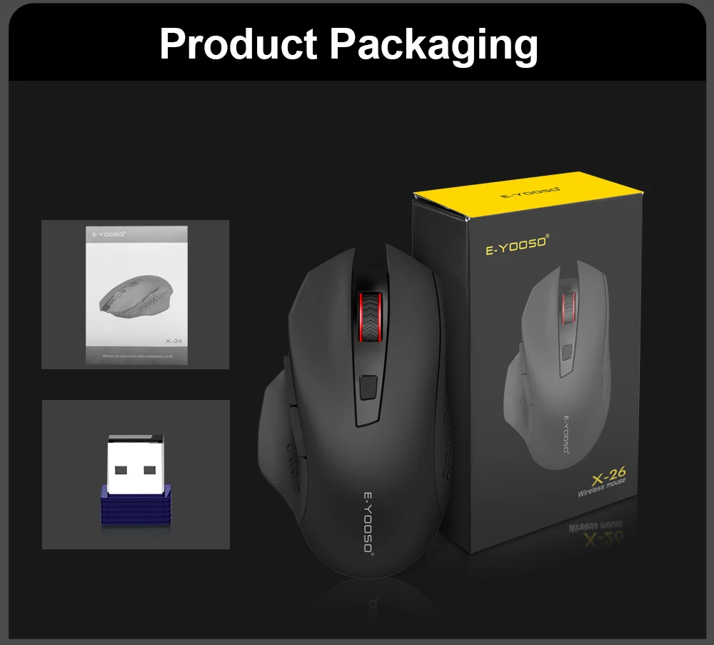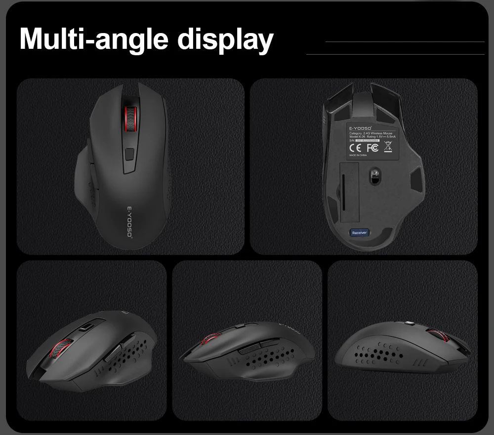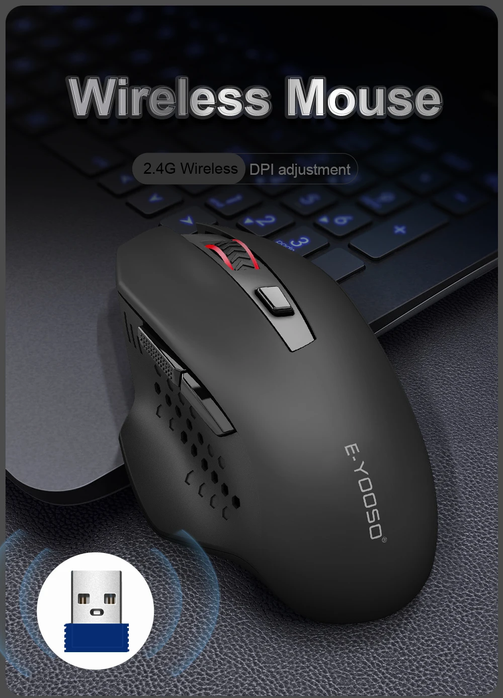 Comprar E-YOOSO-ratón óptico inalámbrico para juegos, dispositivo ergonómico con 5 botones, USB 2,4G, 4800 DPI, para ordenador portátil y PC, X-26
