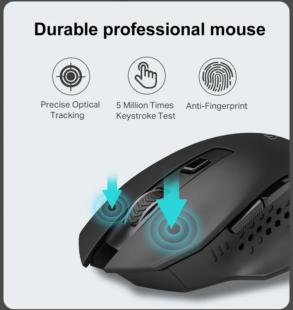 Anti-sudor y diseño ergonómico: E-YOOSO ratón está hecho de material personalizado antideslizante y anti-sudor, construido con una forma contorneada cómoda El dedo descansa en ambos lados del ratón proporcionan soporte adicional, cada dedo puede sostenerse cómodamente durante mucho tiempo. ¡Y también tiene botones hacia adelante y hacia atrás, hacer que su navegación web más eficiente, rendimiento perfecto para más de 50.000.000 pulsaciones de teclas!