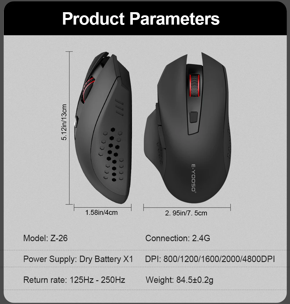 5-nivel 4800 DPI y 2 tipos de tasa de sondeo: Configuración de DPI de 5 niveles (800/1200 (predeterminado)/1600/2000/4800), elija su velocidad cómoda para trabajar o jugar. X-26 moverá más preciso por 125Hz (por defecto) o 250Hz Tasa de Sondeo: Pulse el botón derecho + el medio buttom durante 3 segundos para cambiar la tasa de sondeo.
