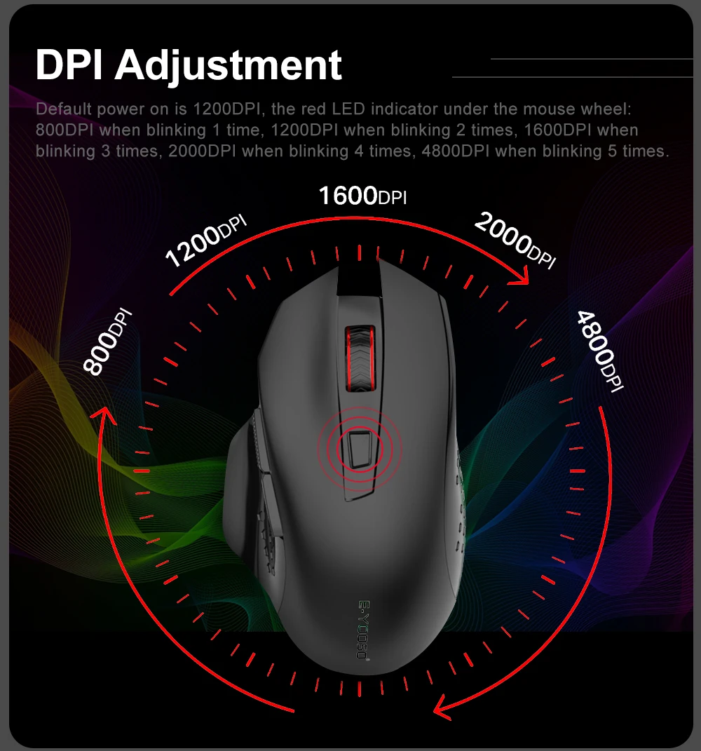 • Resolución 4800 DPI :Disfrute de movimientos precisos y precisos del cursor con una resolución de 4800 DPI.