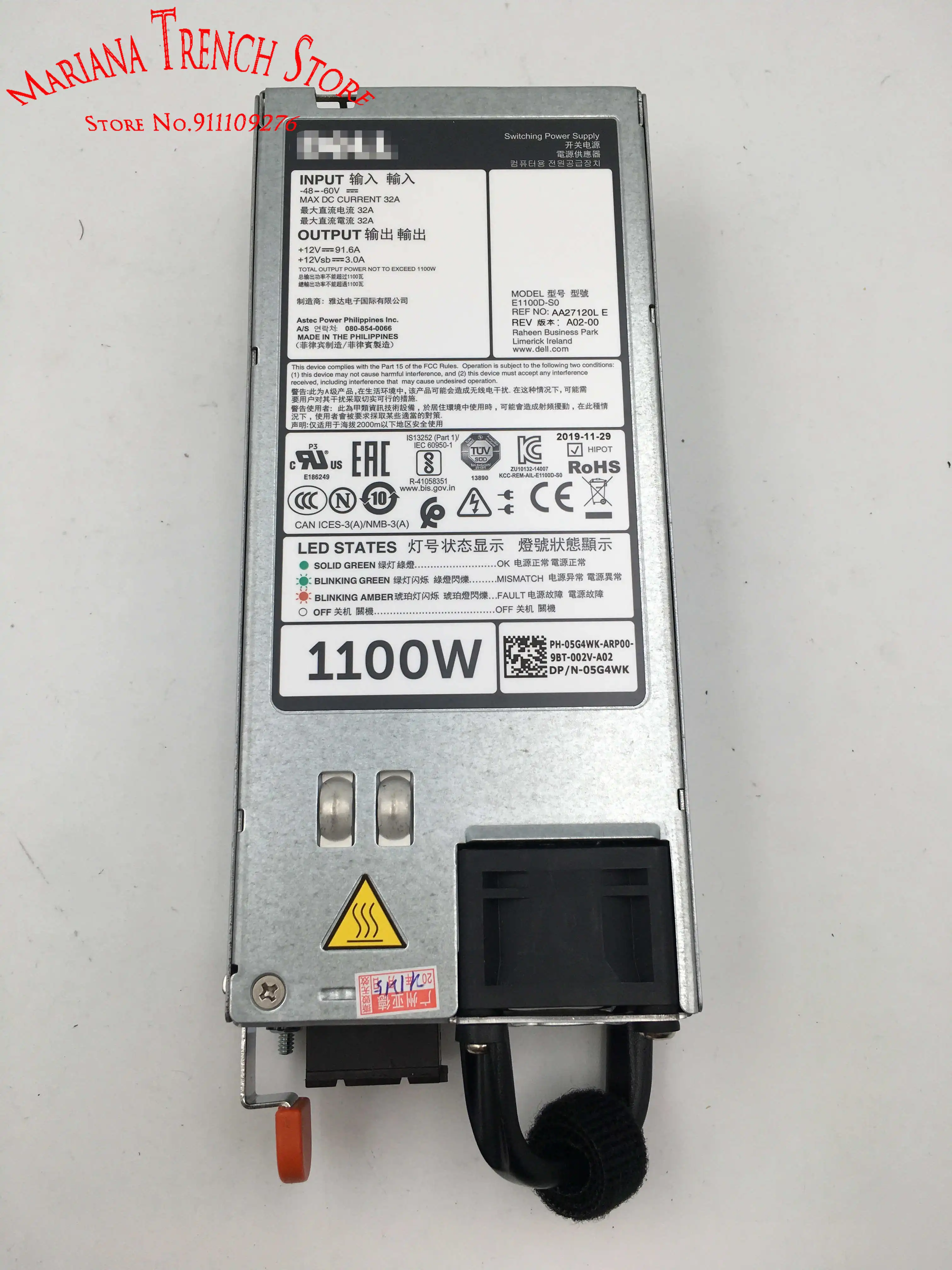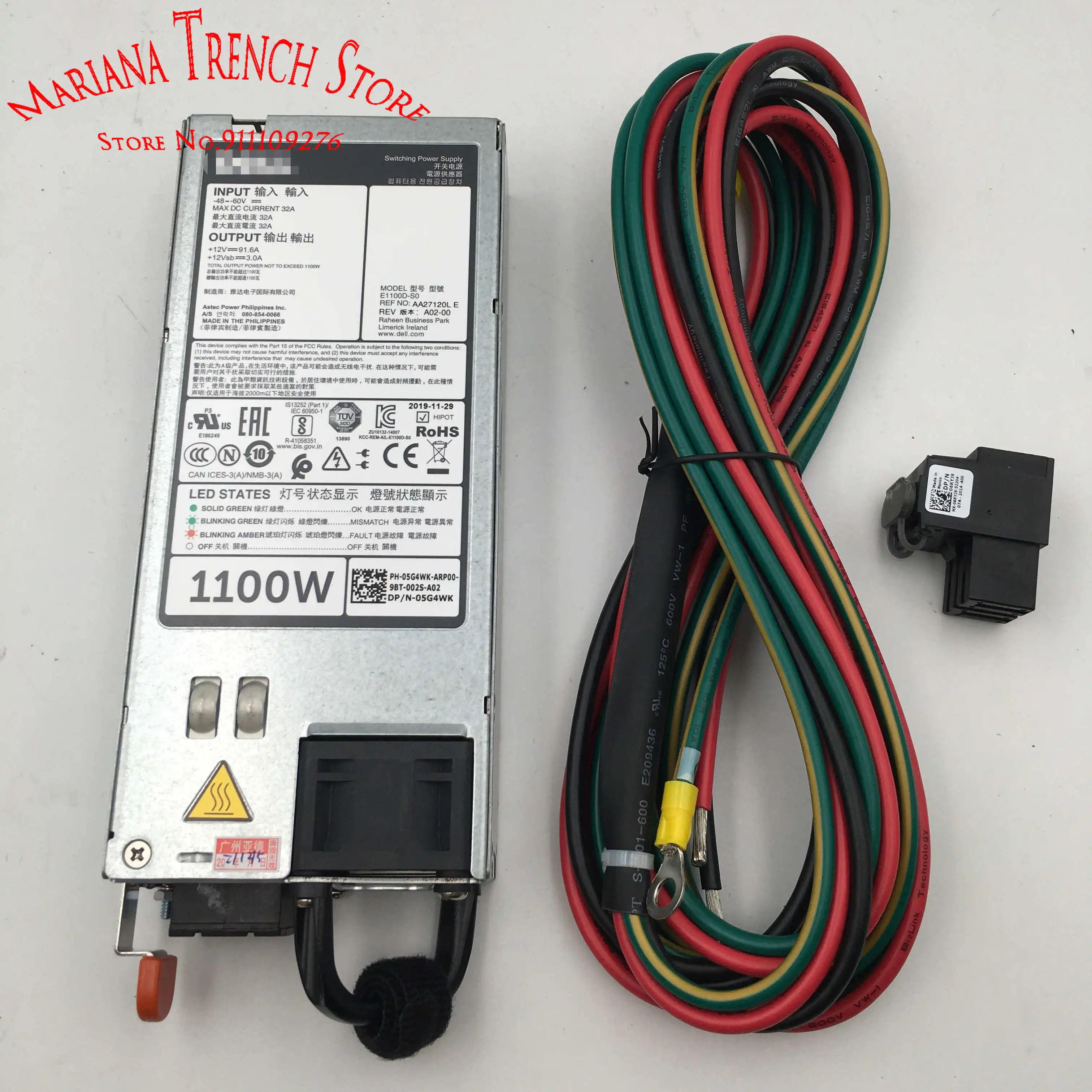 E1100D-S0 for DELL R620 R720 R520 R730XD R740 1100W 48V DC Power Supply