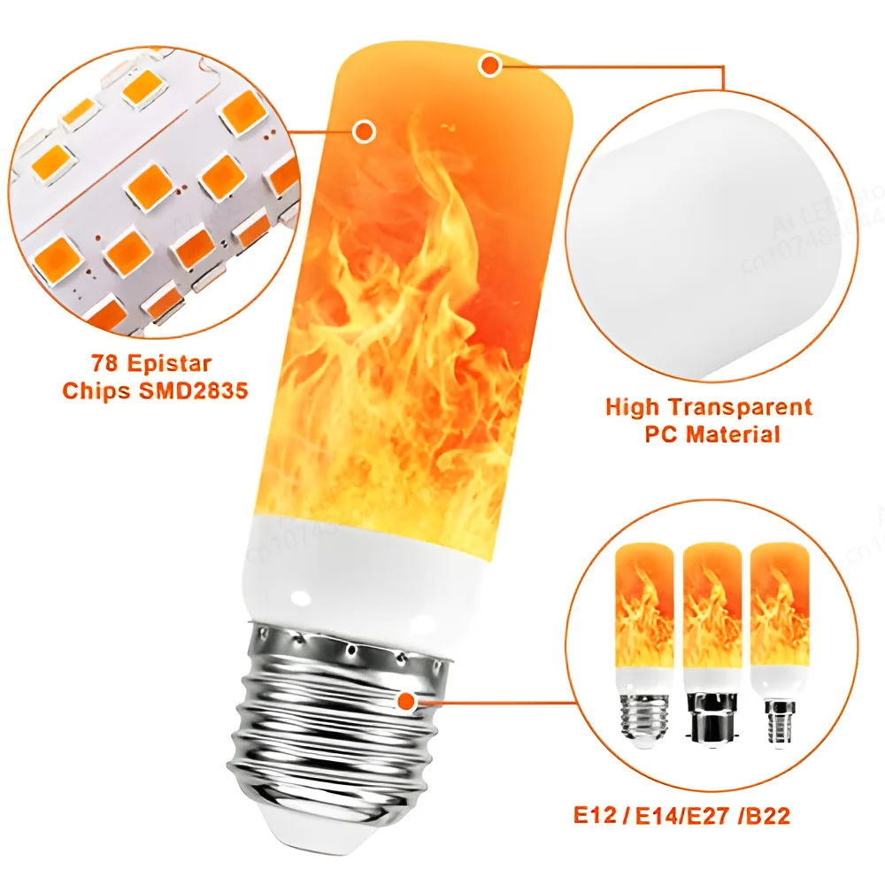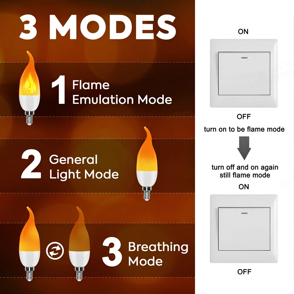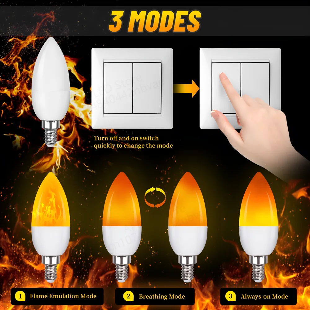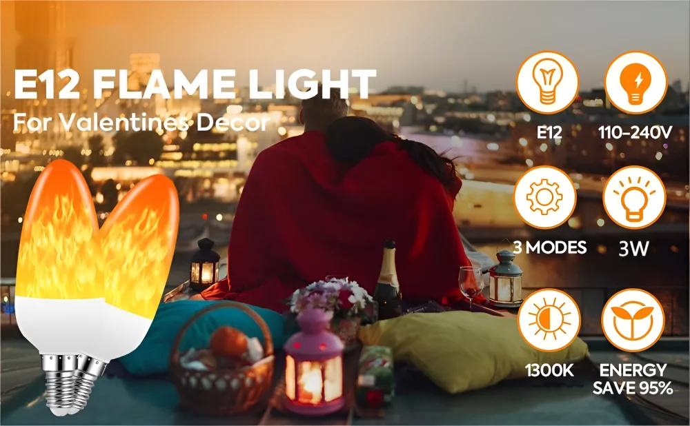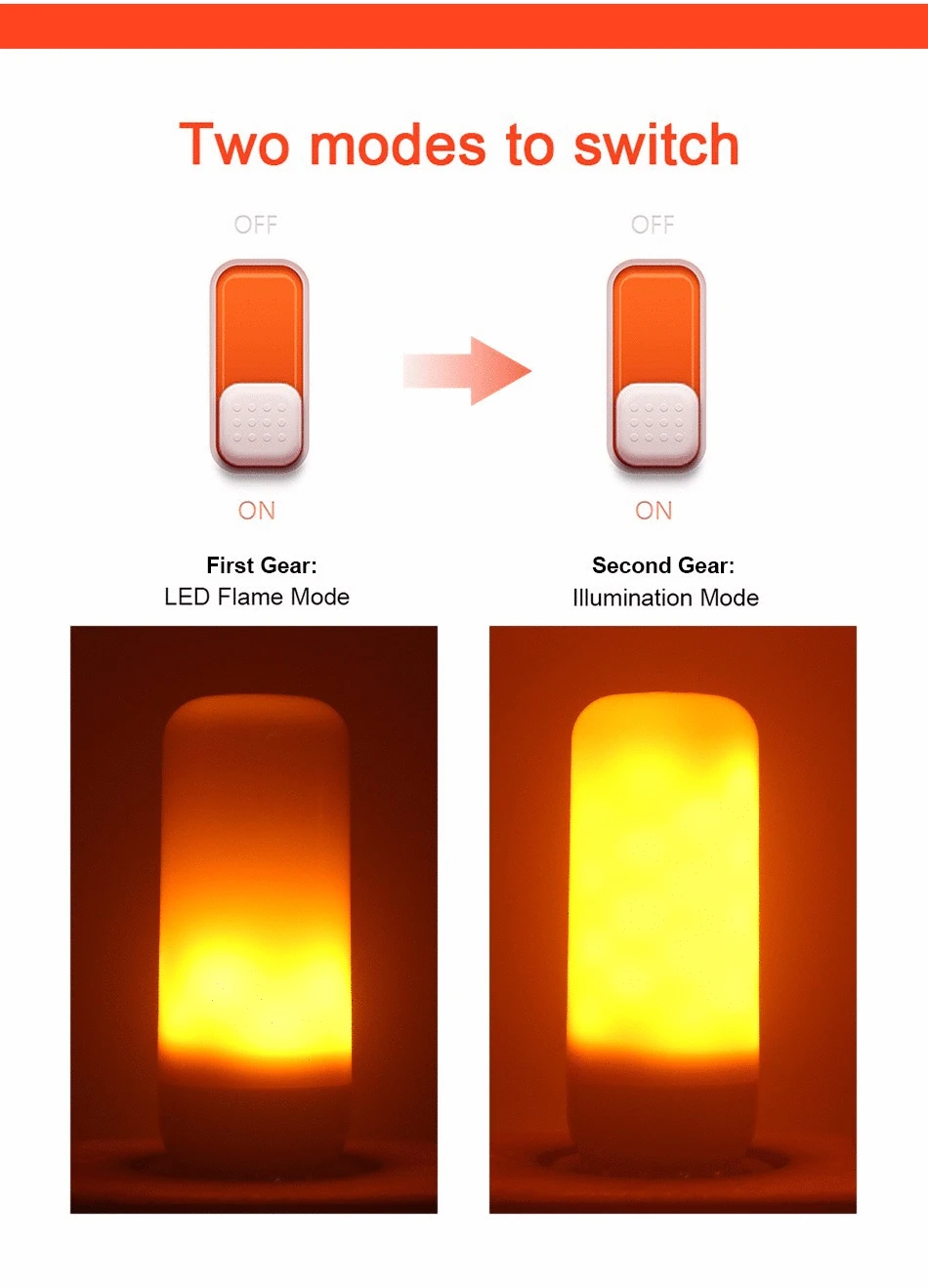 1. Decora tu hogar con el cálido brillo de este color de llama realista para brindar un ambiente romántico y relajante. Reemplazo de linterna de gas tradicional, por ejemplo, lámpara de aceite de actualización, lámpara de huracán.2. Varios MODOS: modo de llama, modo de iluminación normal, modo de respiración. Cada vez que se apaga la alimentación, las bombillas de llama cambiarán a un modo diferente.Cuando la bombilla se haya apagado durante más de 20 segundos, el modo anterior se mantendrá cuando la encienda nuevamente; esto es excelente para no tener que recorrer la configuración cada vez que encienda la bombilla.3. Respetuoso con el medio ambiente y ahorro de energía, sin sustancias nocivas, sin radiación UV ni infrarroja.4.Fácil instalación, amplias aplicaciones, las bombillas con efecto de llama son ideales para iluminación y decoración, se pueden usar en dormitorios, salas de estar, jardines, hoteles, bares, discotecas, restaurantes, villas, iglesias, castillos, fiestas, bodas y etc.Ofrecerte un momento cálido, romántico y relajante.Varios MODE