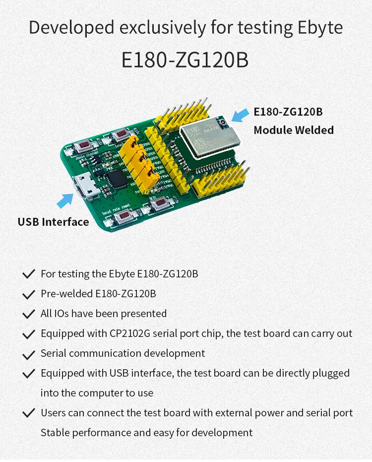 Comprar E180-ZG120A 3,0 EFR32 E180-ZG120B 2,4G Wifi red inalámbrica transparencia módulo de protocolo TouchLink integrado E180-Z6907A