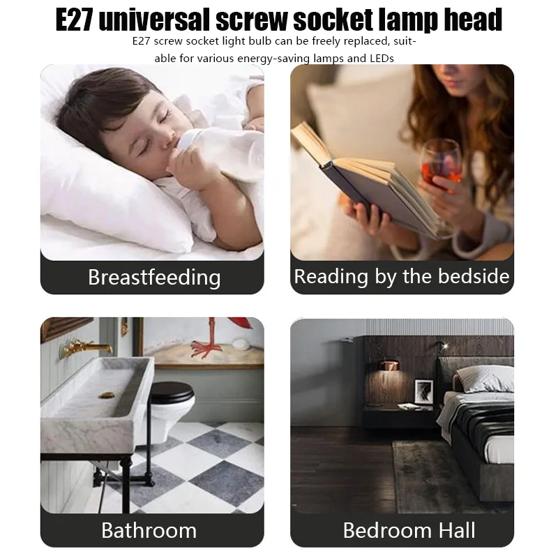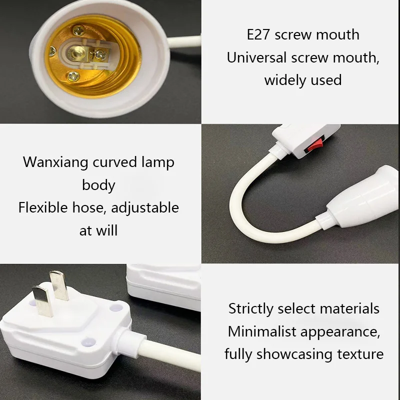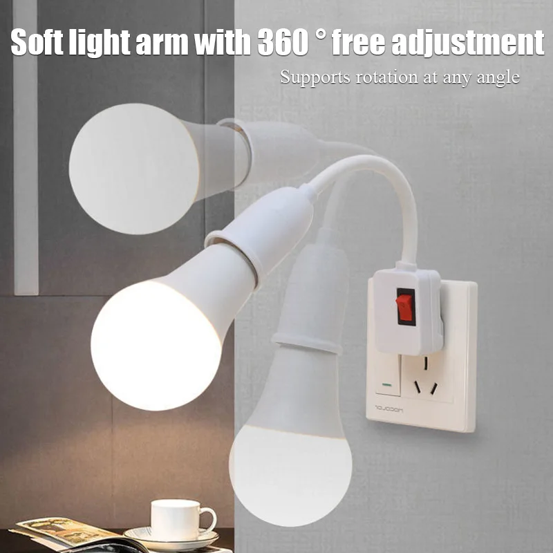 Conversión de Base de Lámpara con Enchufe Europeo/Estadounidense, Convertidor de Portalámparas Flexible de Pared con Interruptor, Toma de Bombilla de Cabeza Led, E27