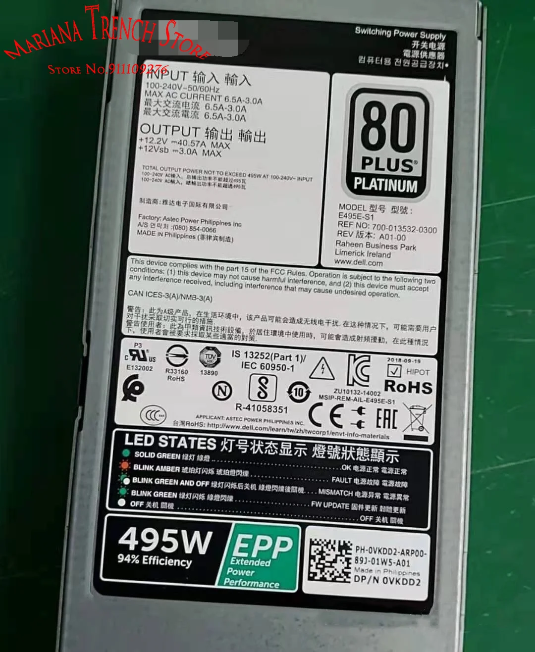 E495E-S1 for DELL Rack Servers EPP 495W Switching Power Supply