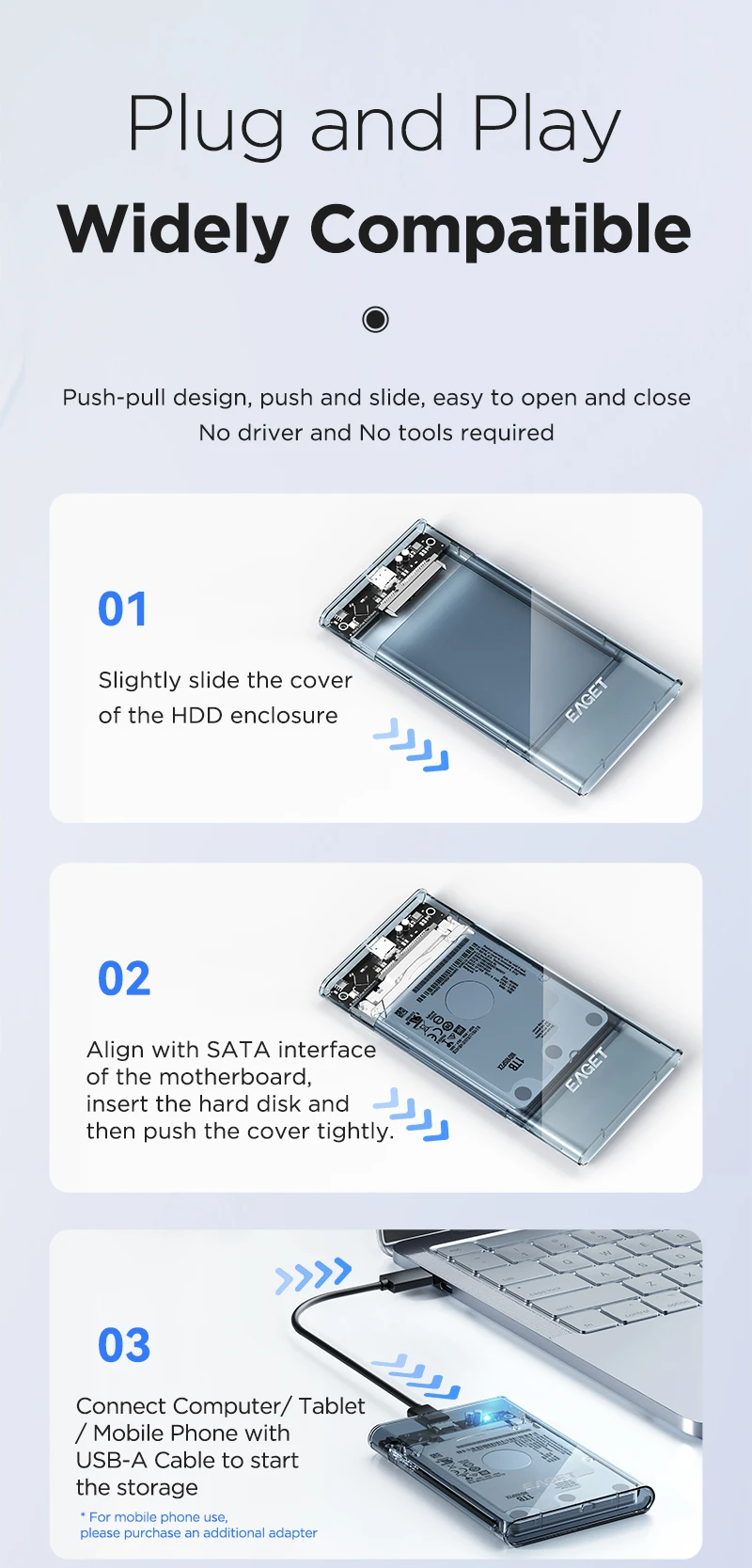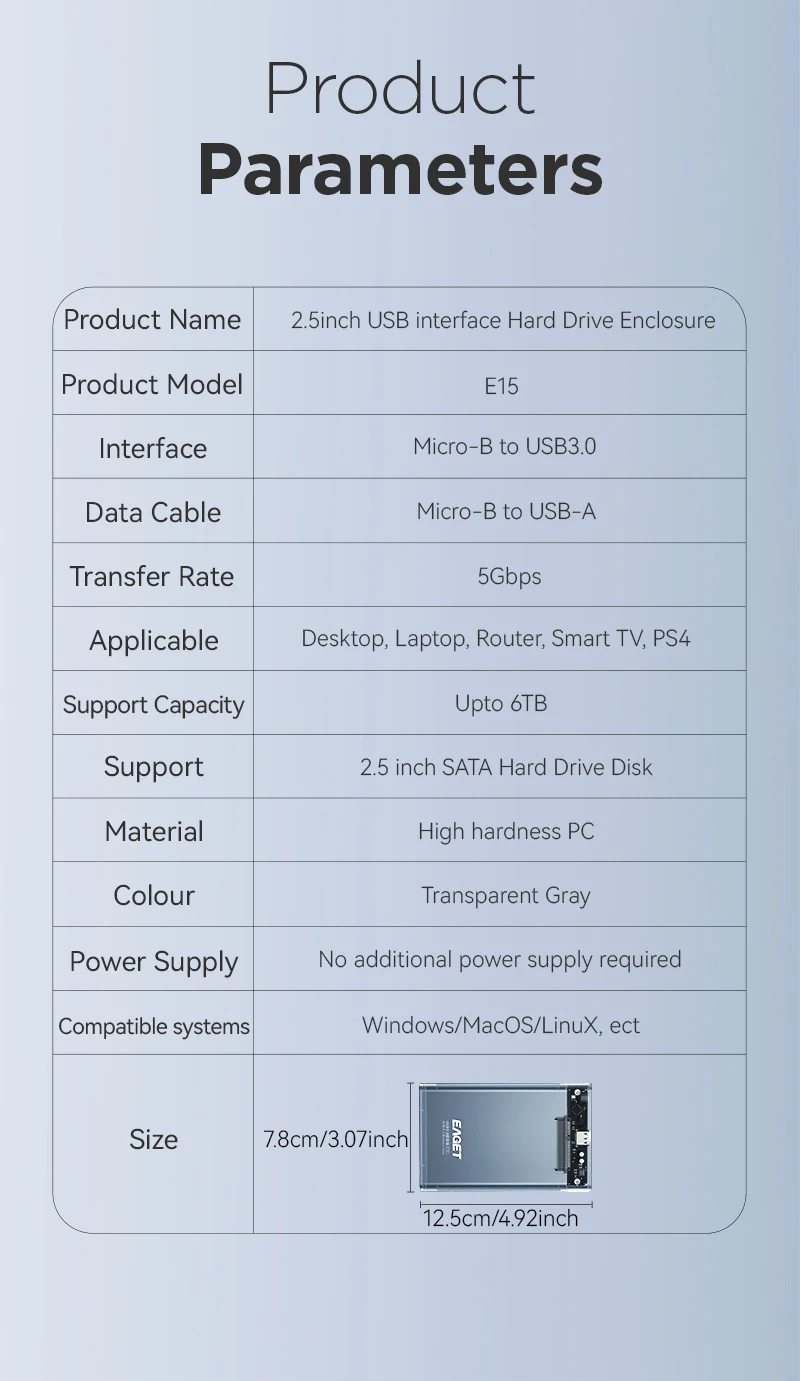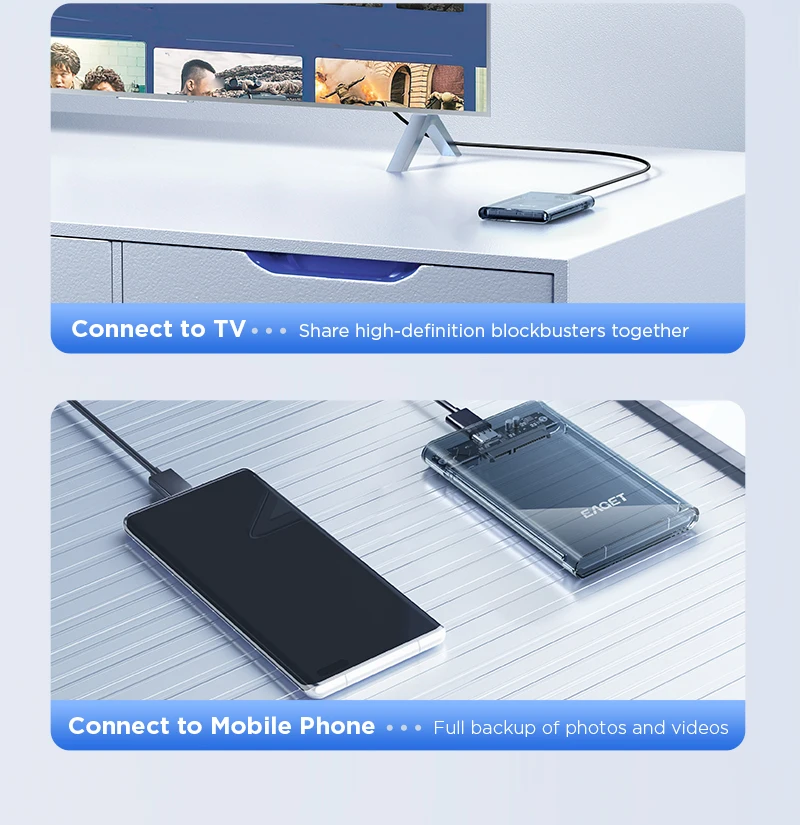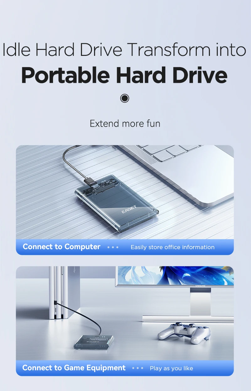 Eaget HDD Case 2.5in SATA a USB 3.0 Caja de disco duro para disco SSD HDD Box USB C 3.1 Gen 2 Caja HD HD HD externo