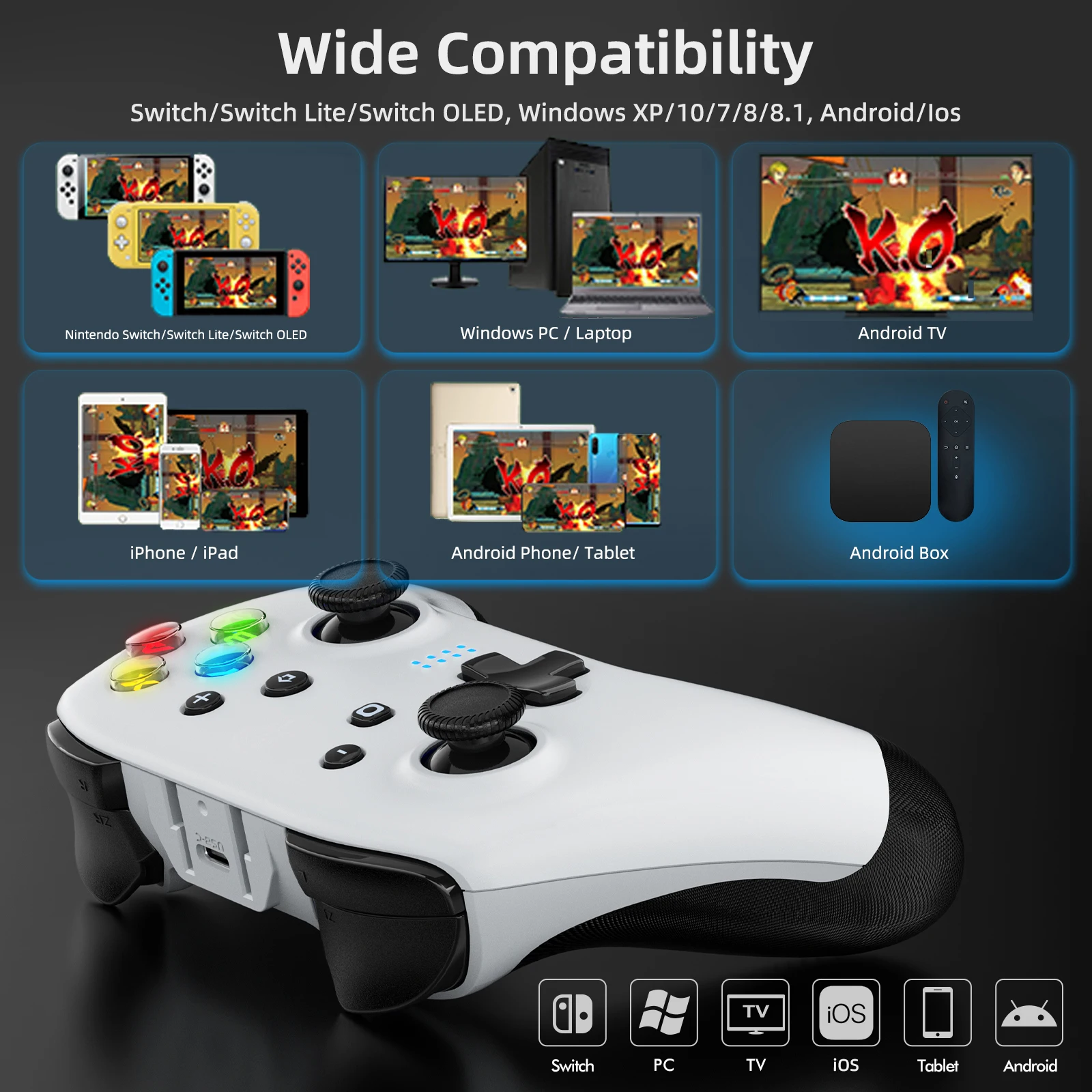 El controlador Switch Pro es totalmente compatible con Nintendo Switch/Switch Lite/Switch OLED, y también compatible con Windows 7 8 10 11 PC/Android/iOS/Steam Deck.