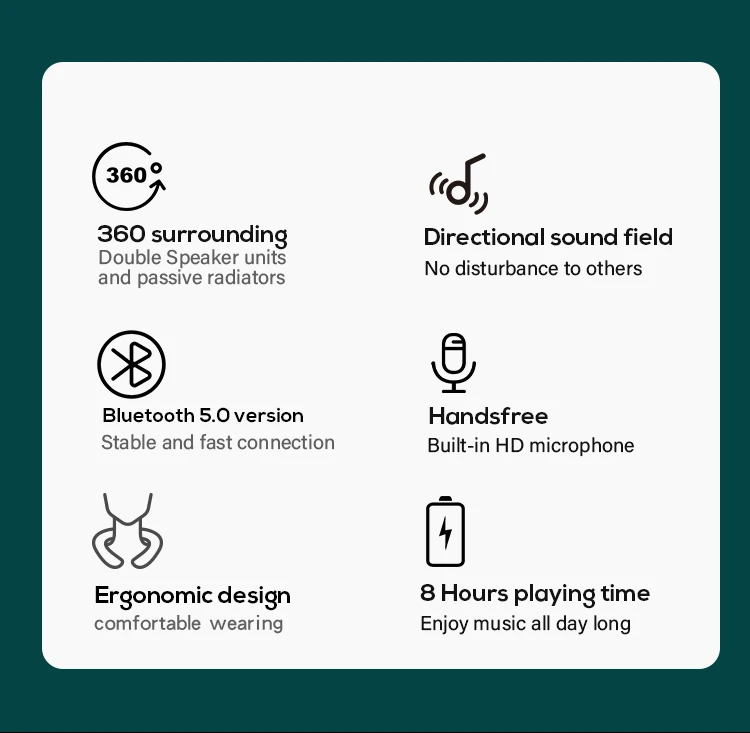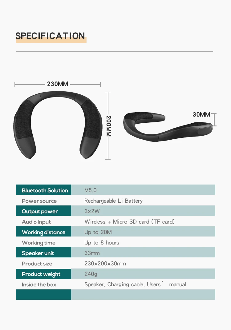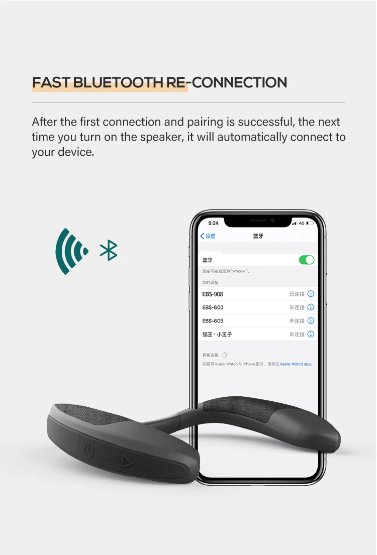 EBS-909 Altavoz inalámbrico portátil con banda para el cuello en forma de U Precio de fábrica Calidad de marca Caja de música HIFI de graves estéreo verdaderos para uso en el hogar y en el exterior