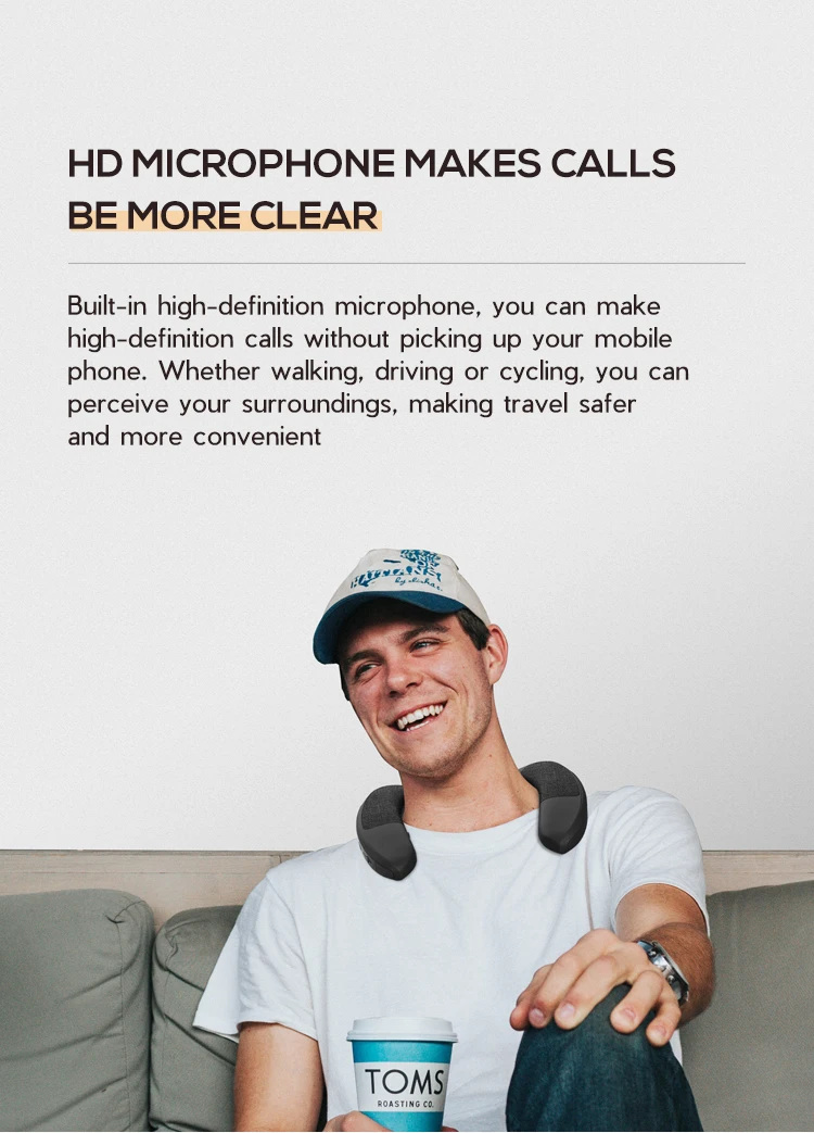 El diseño liviano y portátil del altavoz con banda para el cuello garantiza una fácil portabilidad, lo que lo hace ideal para entretenimiento mientras viaja.