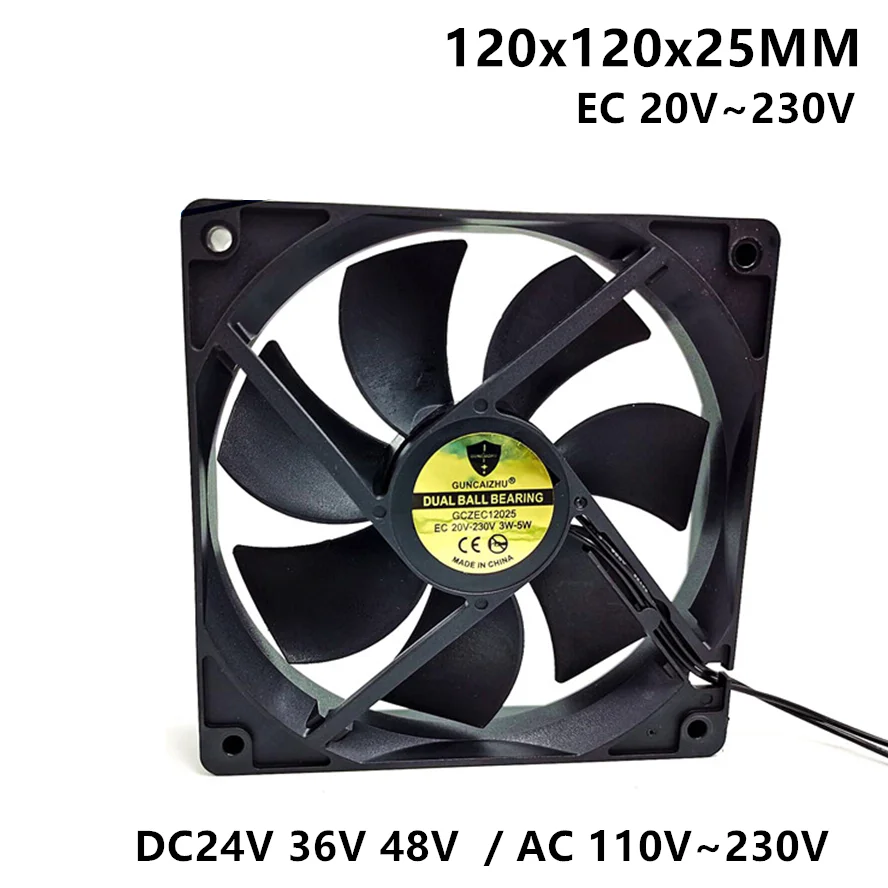Comprar EC 20V ~ 230V 120MM 120x120x25MM doble rodamiento de bolas ventilador de frecuencia Variable 12025 ventilador de refrigeración caja ventilador 2 cables