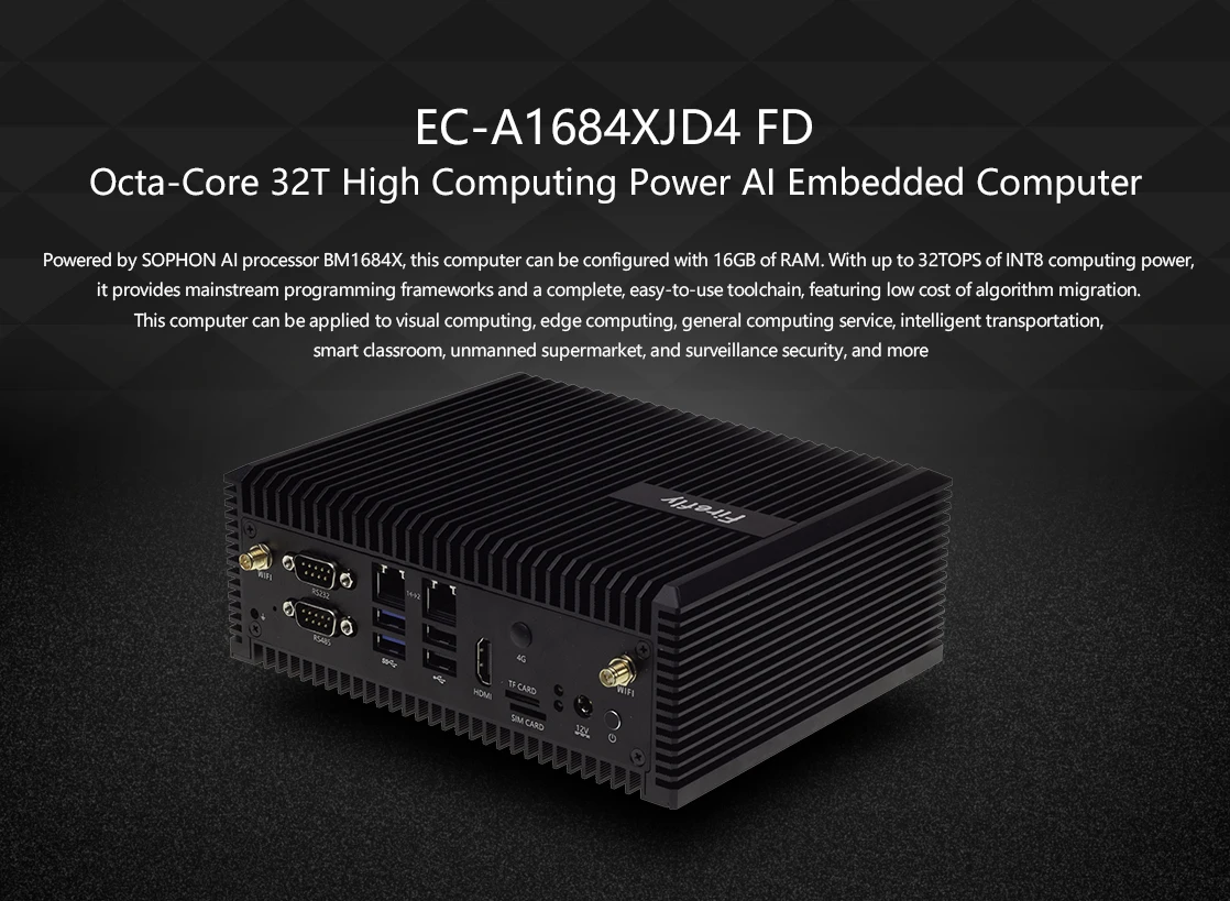 EC-A1684XJD4 FD Octa-Core 32T Computadora integrada AI de alta potencia de computación SOPHON BM1684X Firefly