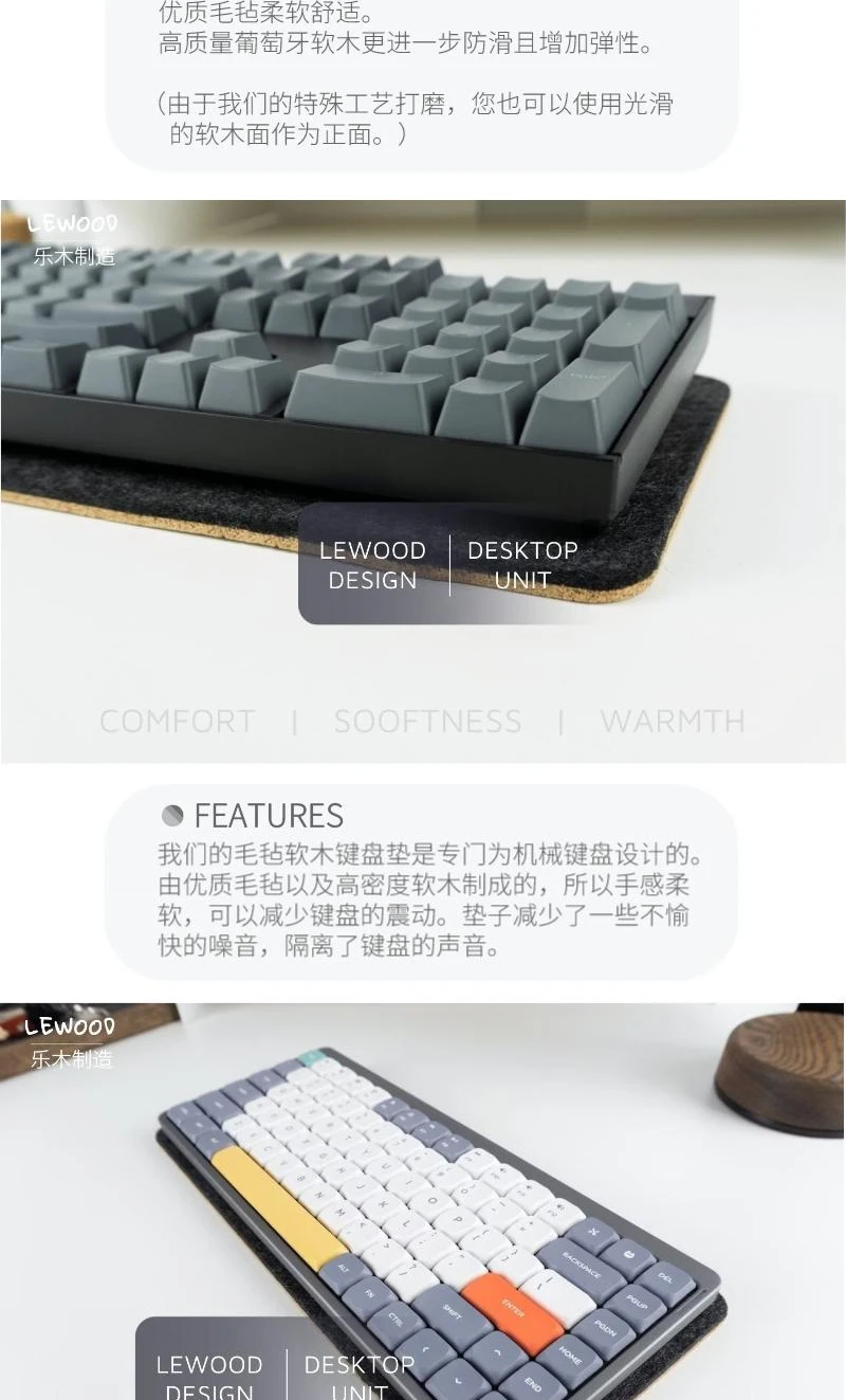 ECHOME Cork Felt HIFI Keyboard Pad Desk Pad Desk Mat Custom Mechanical Keyboard Pad Optimize Sound Effect Compatible with 60%65%