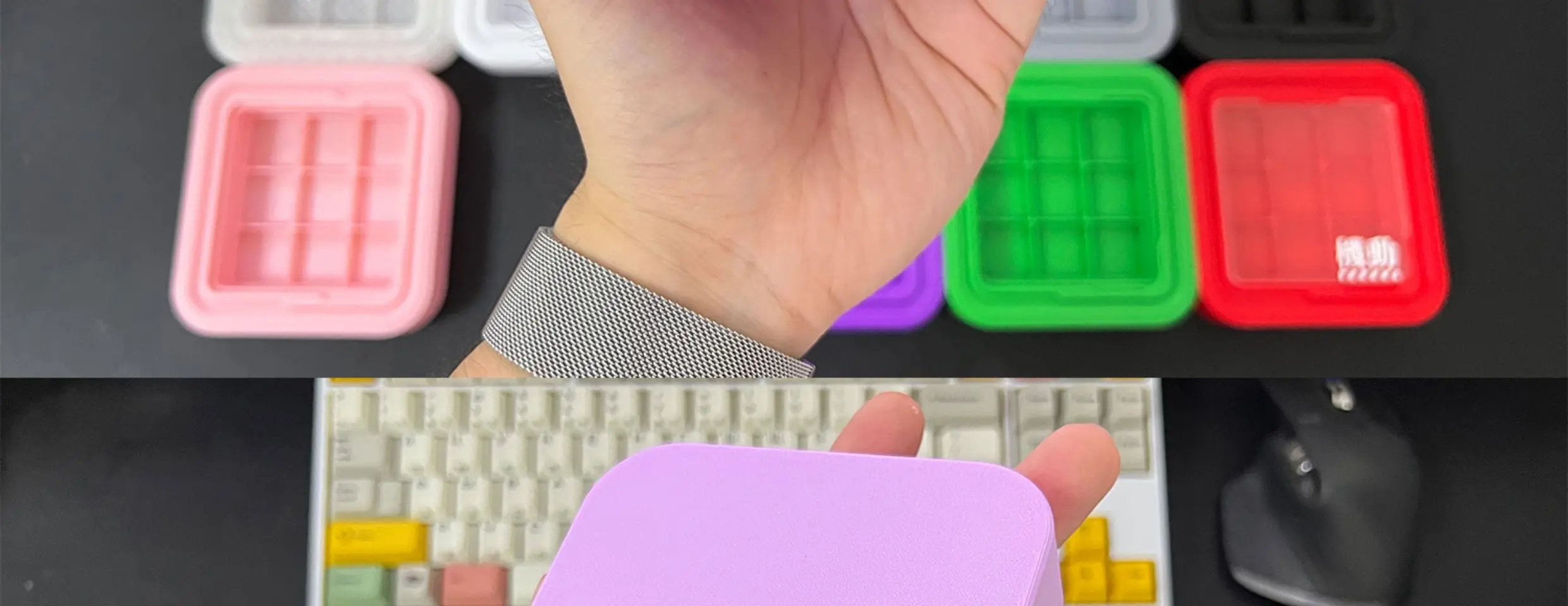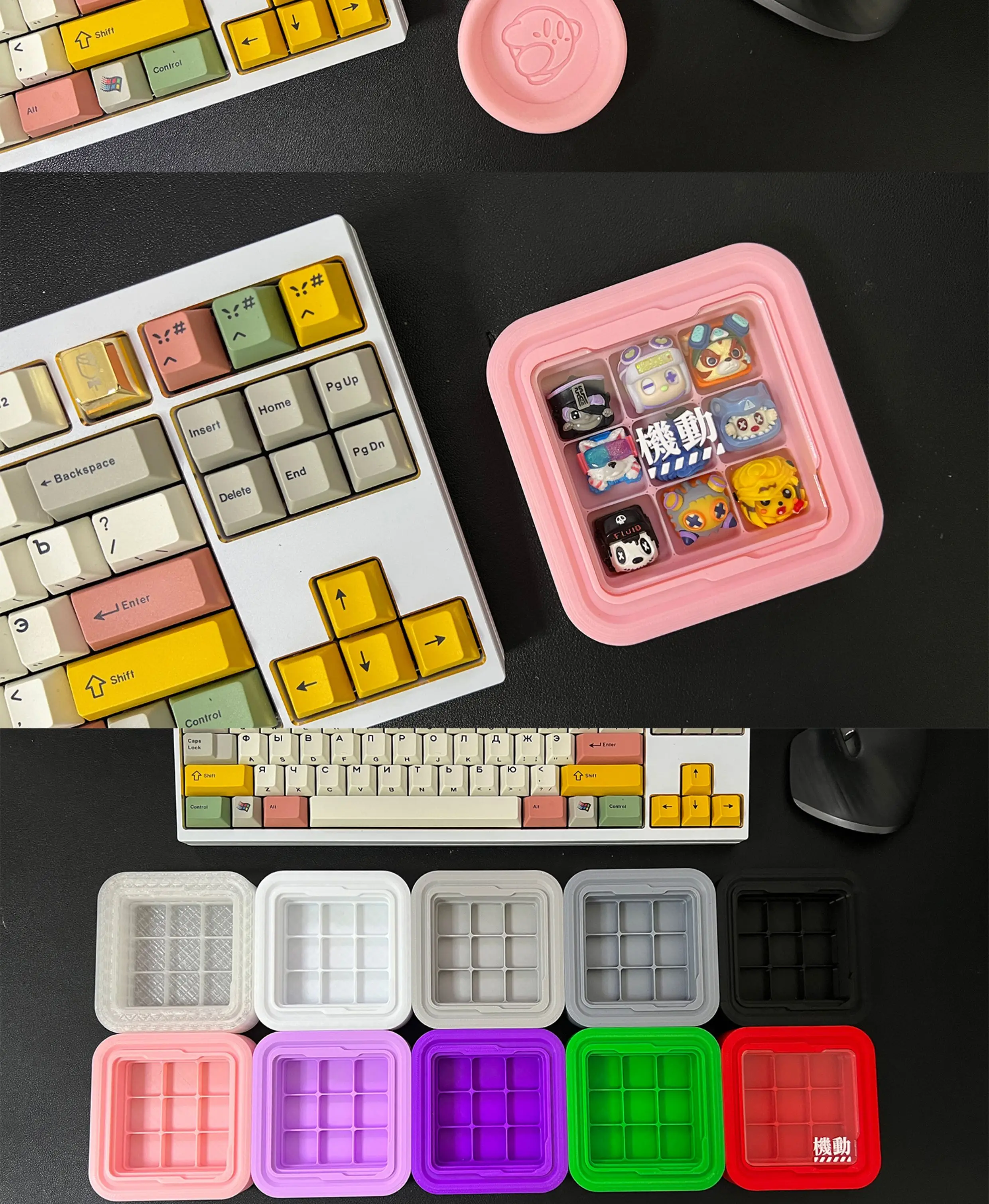 ECHOME-caja de almacenamiento de teclas con impresión 3D personalizada, nueve compartimentos, caja de polvo de teclas de resina metálica, decoración de escritorio, accesorios para juegos