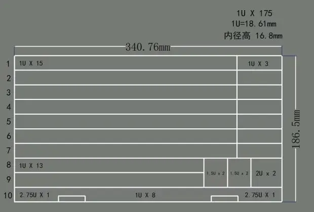 Las teclas SA no encajan perfectamente porque la carcasa parece un poco pequeña, pero la altura coincide. Sin embargo, el espacio entre las filas es demasiado pequeño; 1 mm más y sería perfecto. Las teclas ahora están inclinadas en el empaque, pero está bien.