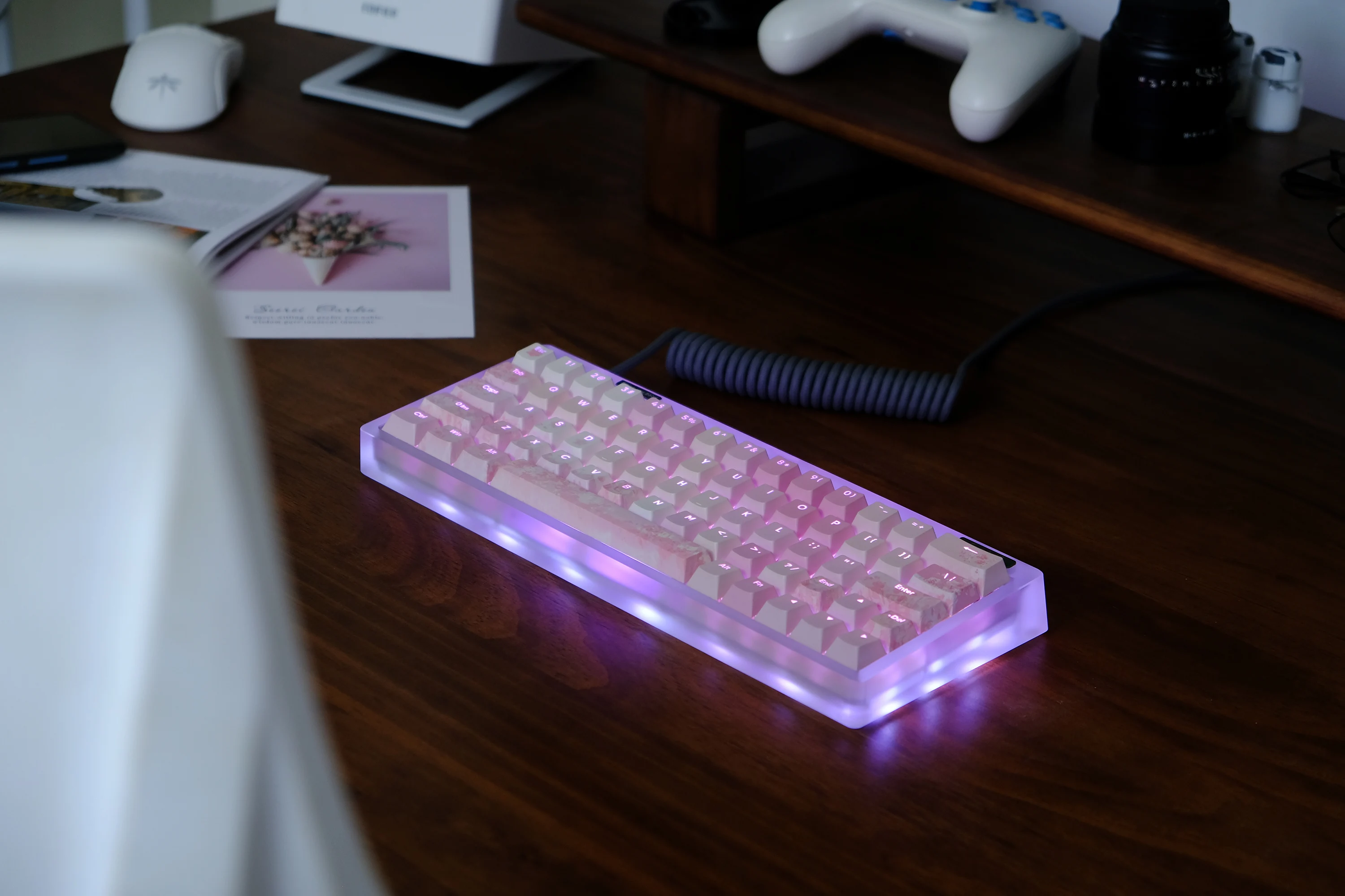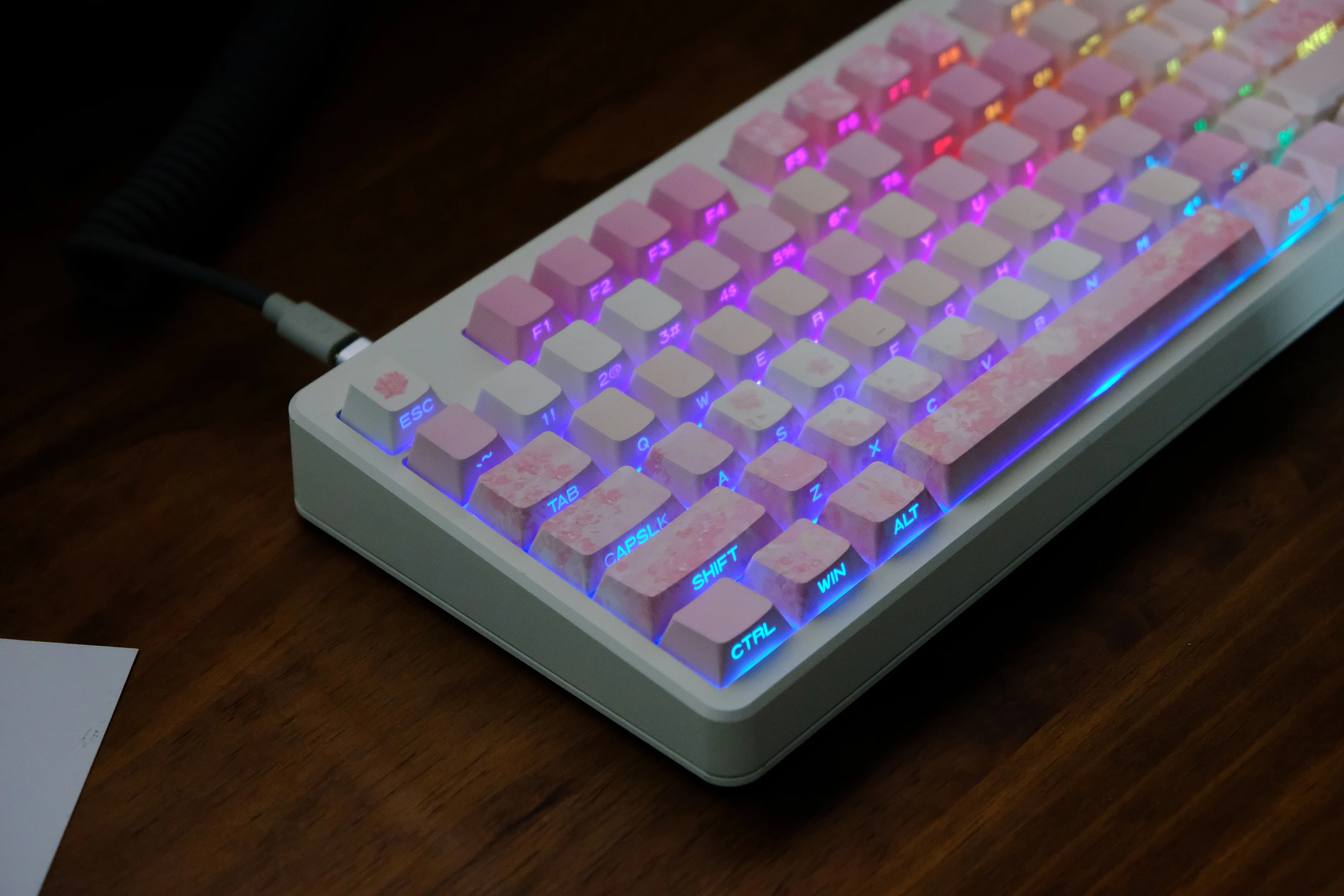 Comprar ECHOME-Tapa de teclado con tema de flor de cerezo rosa, tapa de teclado de sublimación de tinte PBT creativa, tapa de tecla de perfil de cereza para teclado mecánico