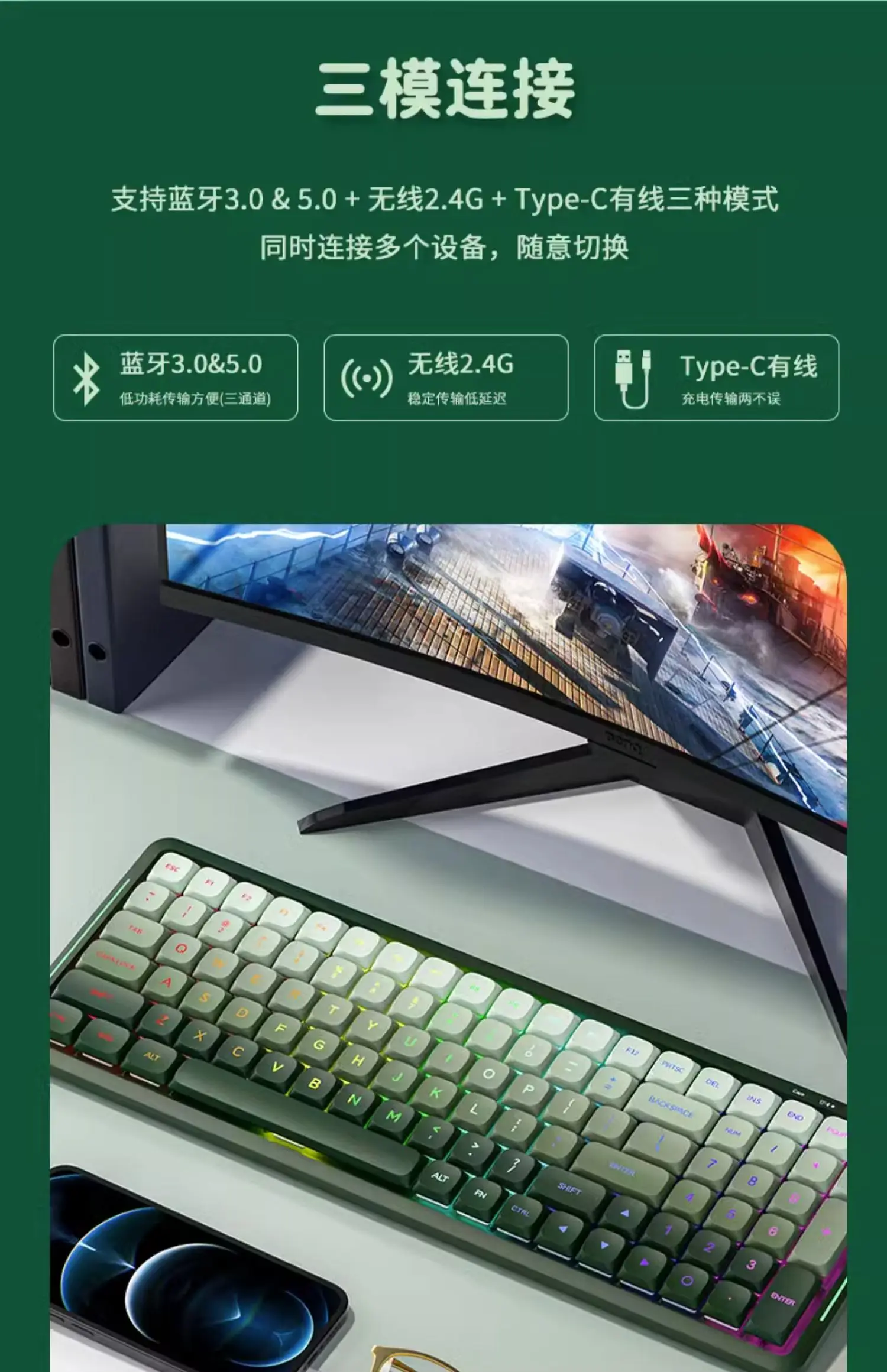 Formas de conexión: compatible con conexión Bluetooth 5,1. 2,4G inalámbrica, tipo C