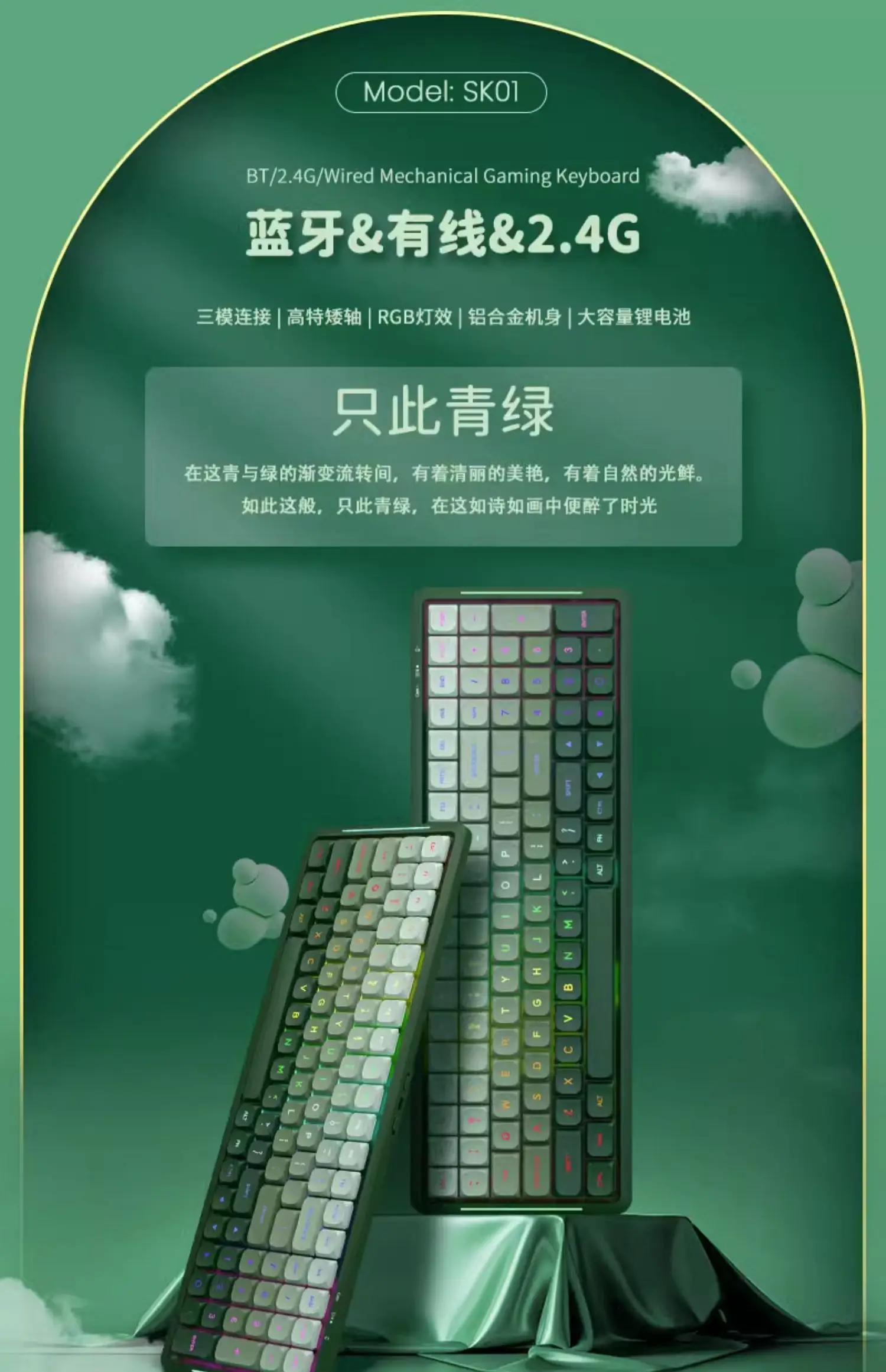 Comprar ECHOME-Teclado mecánico ultradelgado, interruptor de perfil bajo, inalámbrico, trimodo, retroiluminación RGB, Metal, ultrafino, teclado para Juegos de oficina