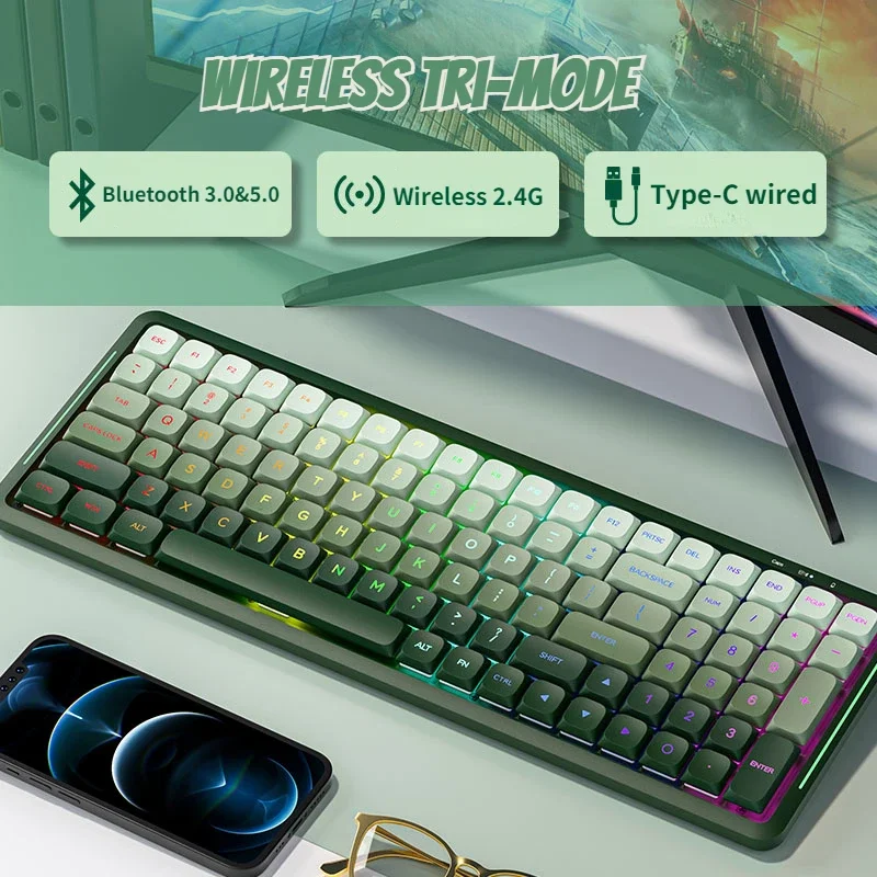 Comprar ECHOME-Teclado mecánico ultradelgado, interruptor de perfil bajo, inalámbrico, trimodo, retroiluminación RGB, Metal, ultrafino, teclado para Juegos de oficina