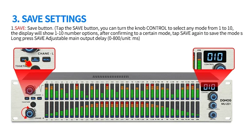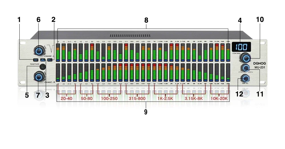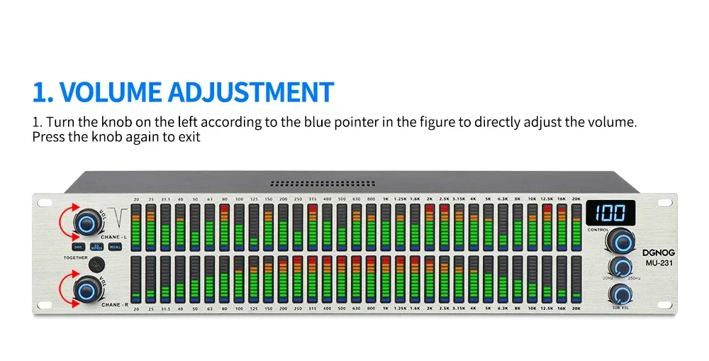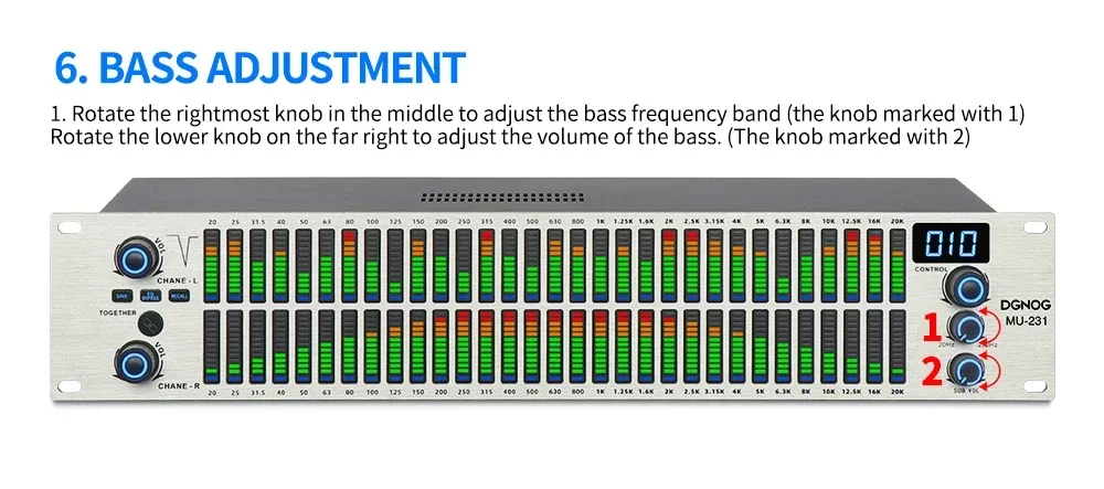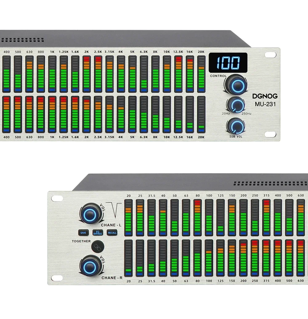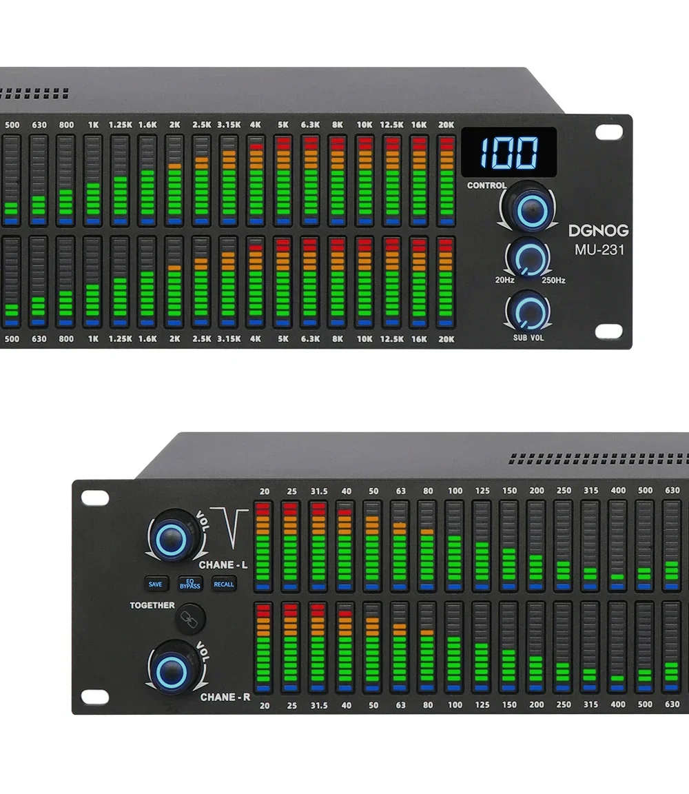 【Control de grado profesional】- Nuestro ecualizador de procesamiento DSP de 31 bandas DGNOG cuenta con indicadores de espectro LED y visualización de frecuencia de 31 bandas en tiempo real, con una precisión absoluta del 99%.Logre ajustes de audio precisos utilizando controles intuitivos, al tiempo que reduce el ruido máximo de fondo para una producción de audio excepcional.
