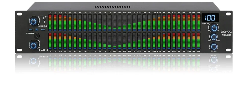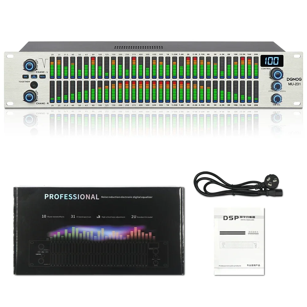 Comprar Ecualizador de Audio gráfico Dual de 31 bandas 2U, sistema de sonido profesional de Karaoke Digital, 3 canales con salida de subwoofer para estudio DJ