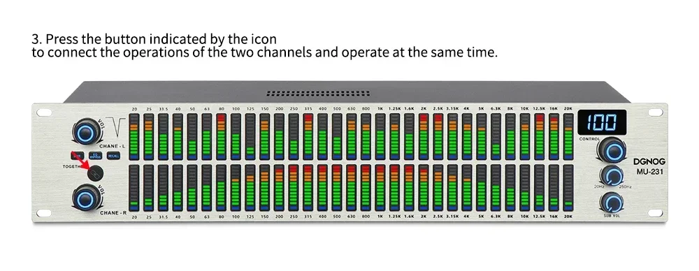 Ecualizador de procesamiento DSP de 31 bandas con control síncrono de doble canal
