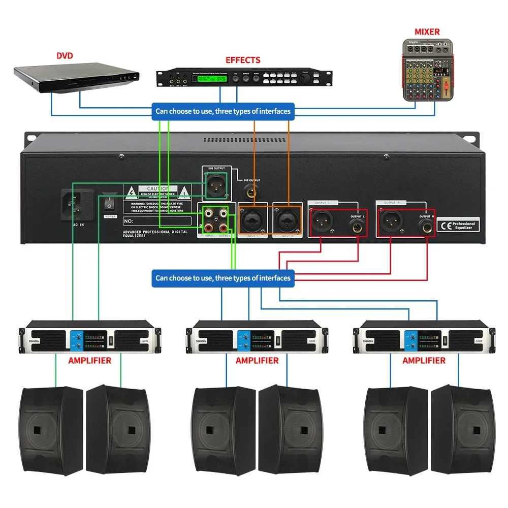 【Compatibilidad versátil】- Nuestro ecualizador cuenta con una variedad de interfaces de entrada y salida, incluidas interfaces balanceadas TRS de 6,35 mm, RCA y XLR, lo que facilita la conexión a sus dispositivos.Ya sea para configuraciones de estudio doméstico o equipos de rendimiento en vivo, nuestro ecualizador ofrece compatibilidad multifuncional.Integre fácilmente con micrófonos, instrumentos, cines en casa, audio profesional y otras fuentes.