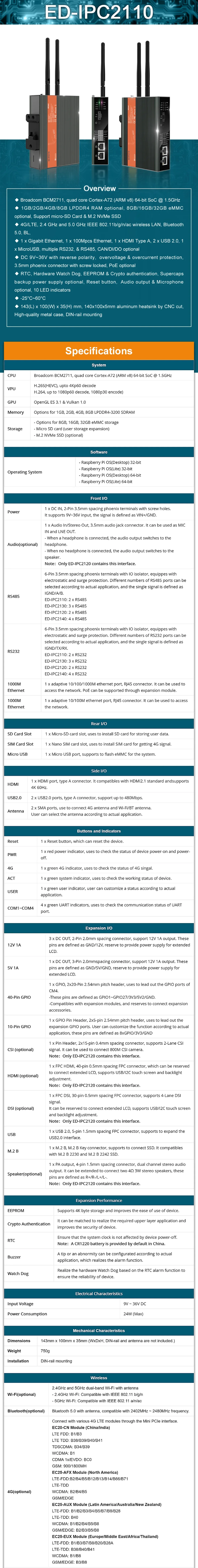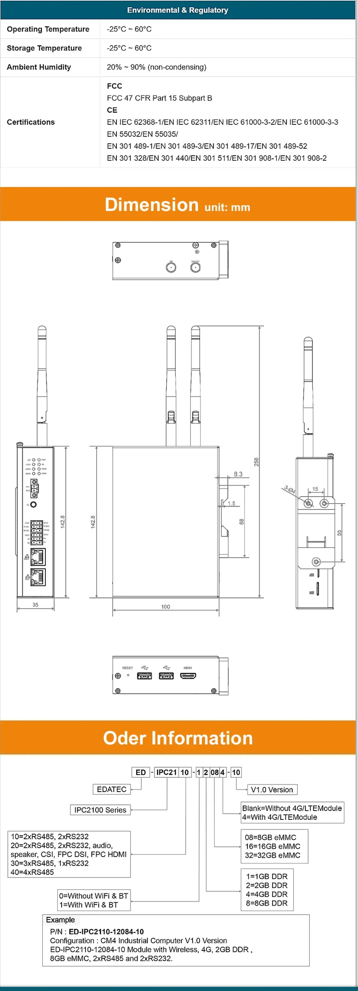 Comprar EDATEC-IPC2110 Broadcom BCM2711, computadora industrial de alto rendimiento basada en Raspberry Pi, con wifi,EMMC,DDR