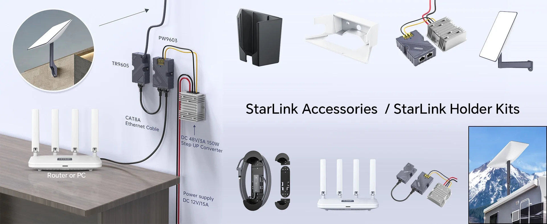Tipo C:Adaptador de cable Dishy a RJ45 + Inyector PoE de 150 W + Convertidor DC Step UP + enrutador openwrt 2960.
