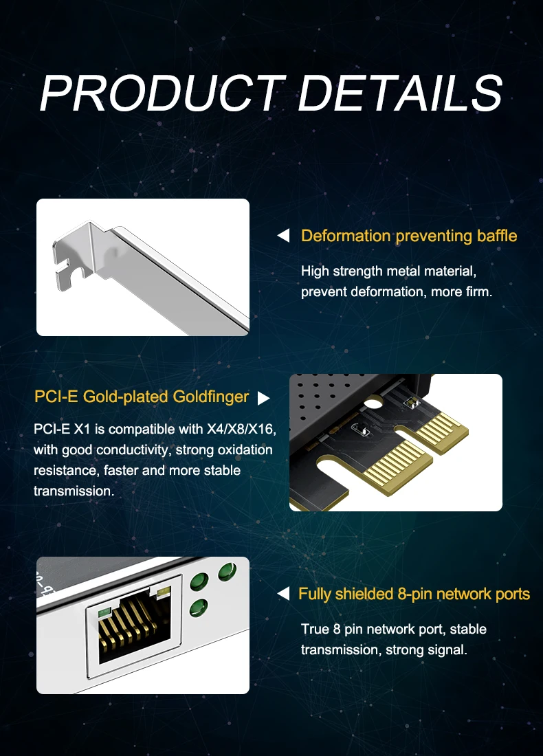 Al convertir la ranura PCI-E del host en un puerto de red RJ45 estándar, es más estable que otras redes y admite redes de doble canal de alto rendimiento y comunicación dúplex completa, con una transmisión de alta velocidad de 2500Mbps. Está diseñado específicamente para entusiastas de los deportes electrónicos.