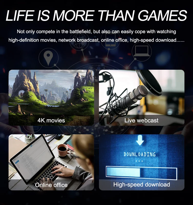 No solo compite en el campo de batalla, sino que también puede hacer frente fácilmente a ver películas de alta definición, transmisión en vivo en Internet, Oficina en línea y descarga de alta velocidad...