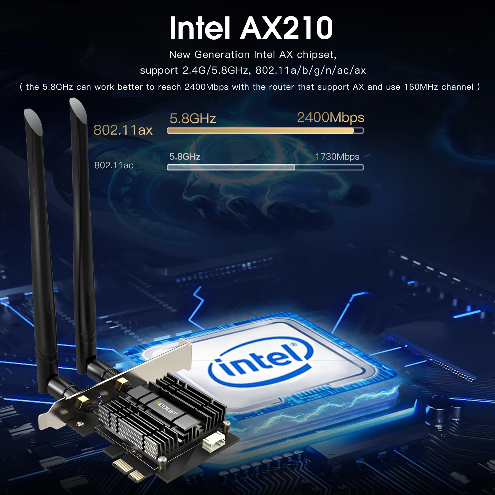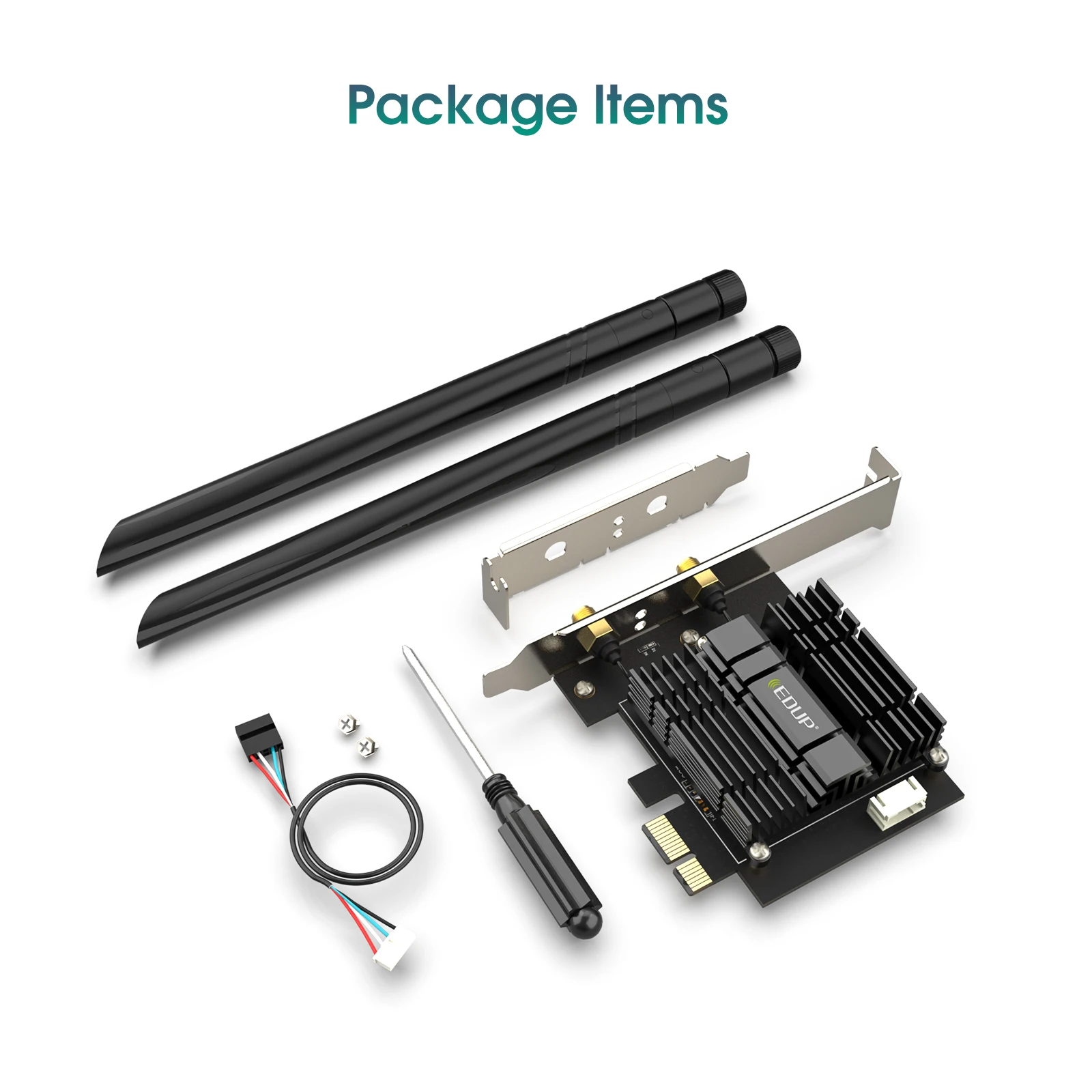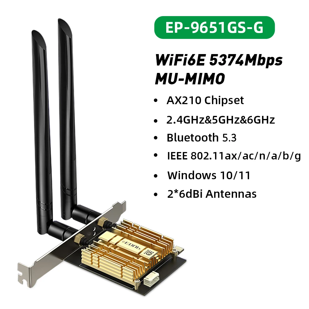 EDUP 9651GS-B WiFi 6E adaptador WiFi PCIE Bluetooth 5.3 tarjeta de red inalámbrica tarjeta PCIe inalámbrica 2,4G/5,8G/6GHz WiFi de alta velocidad