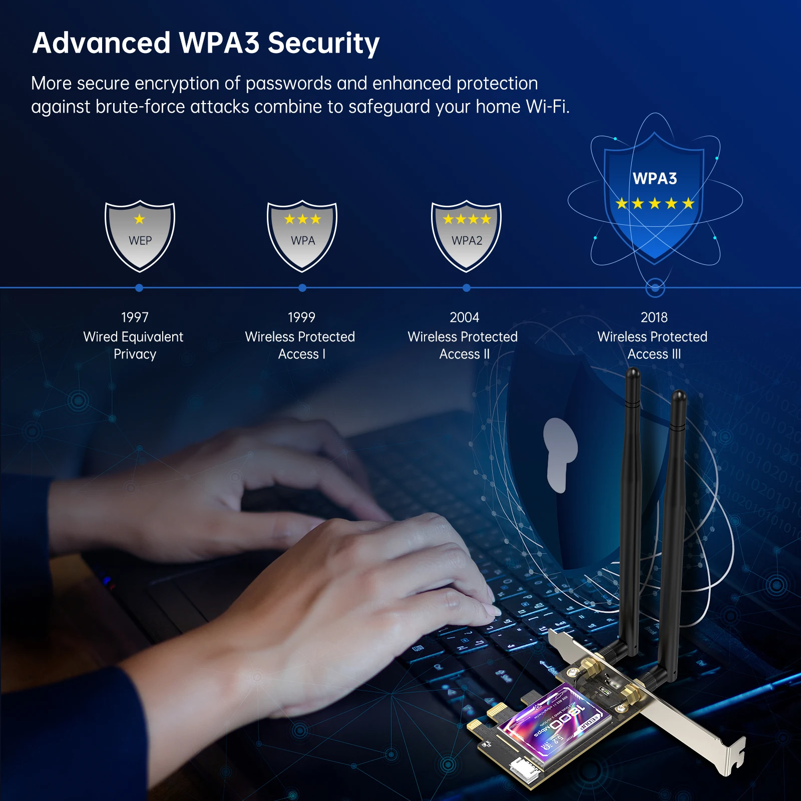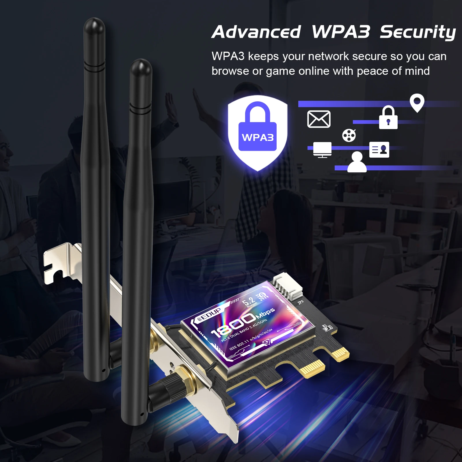 EDUP 9658 AX1800Mbps Wi-Fi6 Bluetooth 5.2 Adaptador PCI Express 2,4G/5.8G 1200Mbps Potente chipset avanzado MU-MIMO Velocidad rápida