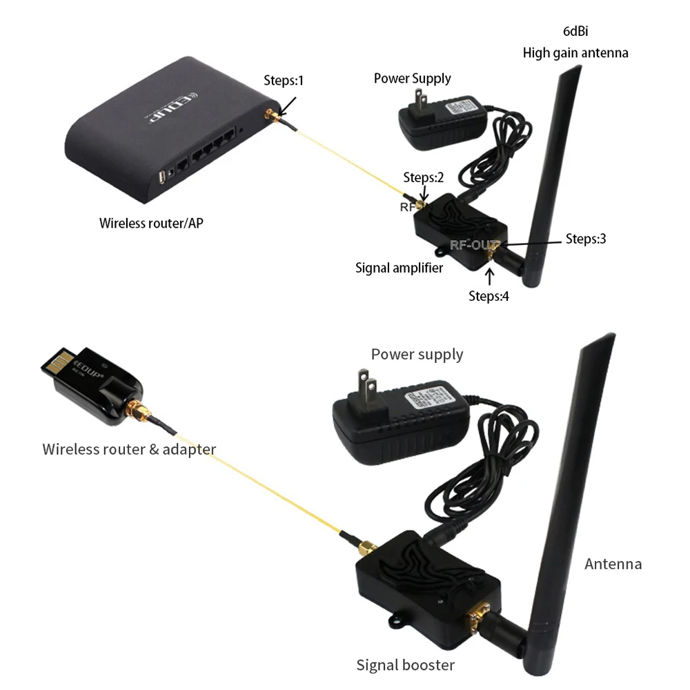 1. El artículo debe conectarse con el enrutador de punto de acceso juntos, entonces puede funcionar y el enrutador de punto de acceso NO está incluido. Su dispositivo debe ser conector desmontable de antena SMA cuando se usa, Por ejemplo, el enrutador de antena desmontable SMA confirma que el rango de potencia de salida de tu dispositivo está entre 3dBm y 30dBm, solo que el amplificador de señal WiFi podría funcionar bien.