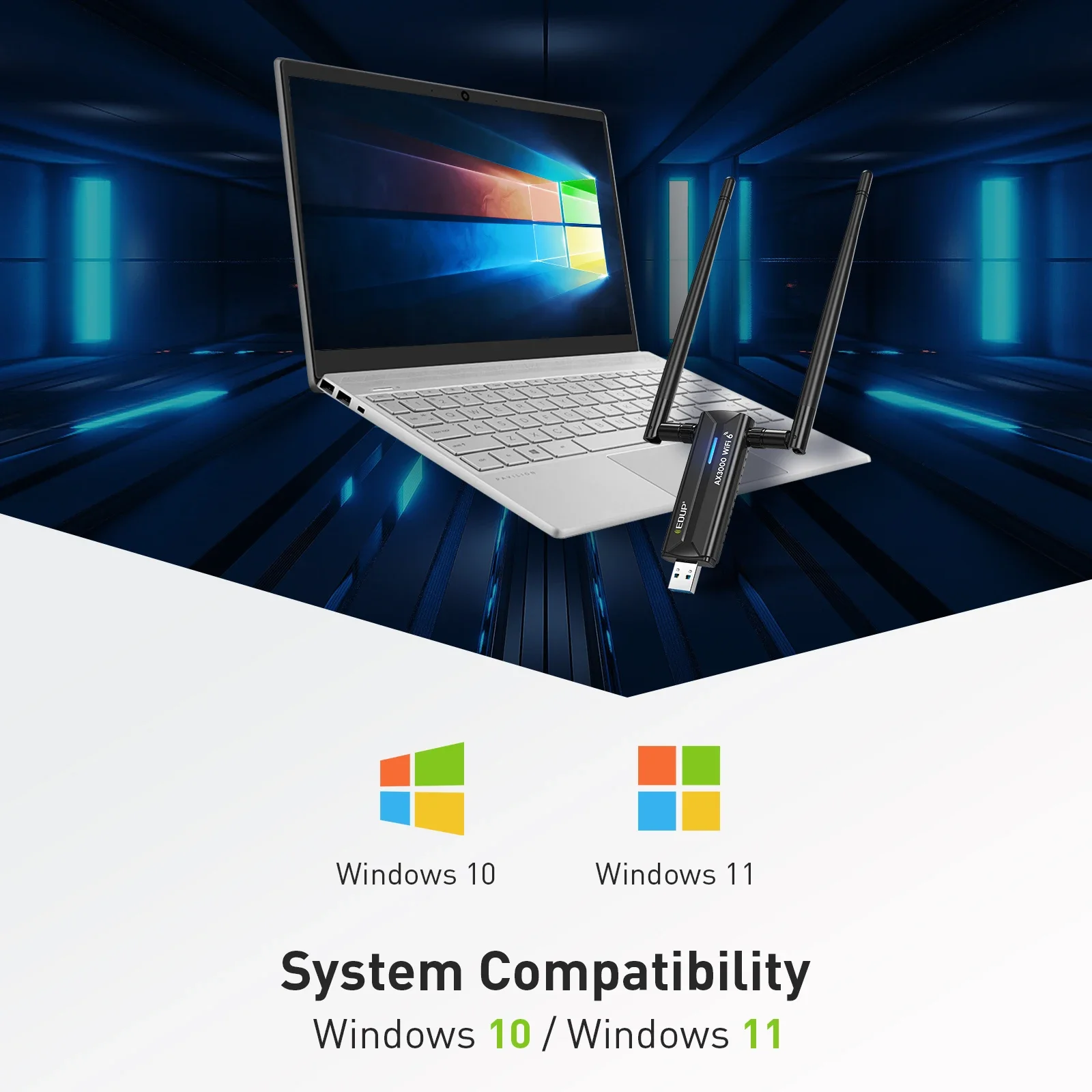 Windows10 (2,4 GHz, 5Ghz)/Windows11 (2,4 GHz, 5Ghz, 6GHz)/Linux (2,4 GHz, 5Ghz, 6GHz)