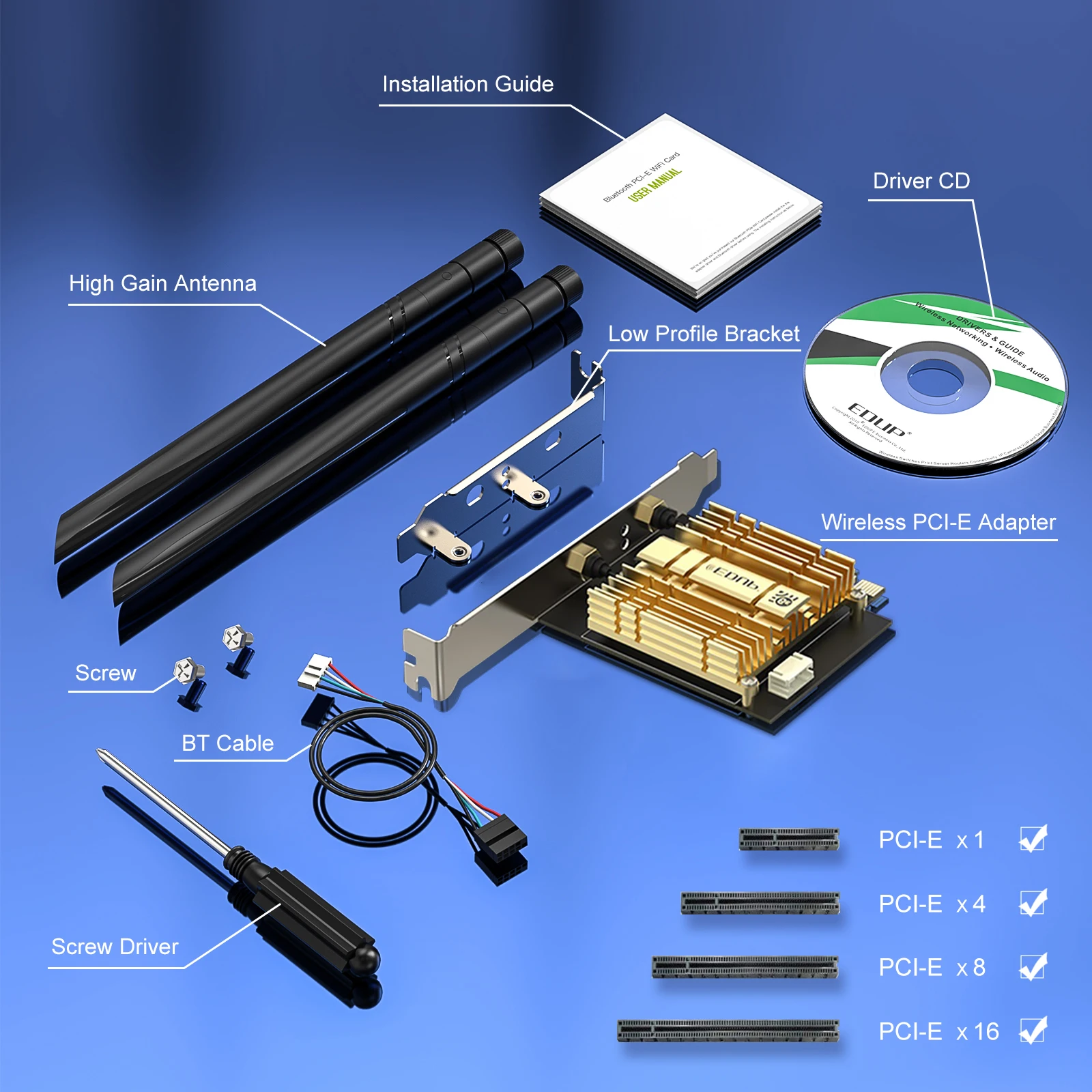 Comprar EDUP-adaptador pci-express WIFI 6E, tarjeta WIFI de doble banda PCIE para escritorio, compatible con Win10, Intel AX210, 5374Mbps, Bluetooth 5,3