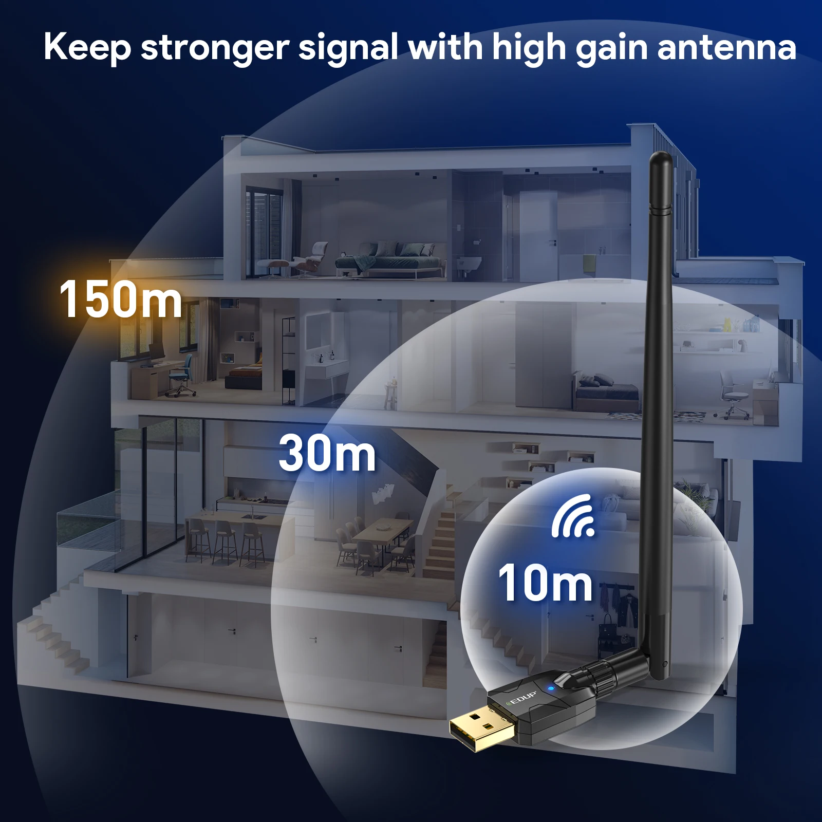 Adaptador Bluetooth actualizado, puede alcanzar hasta 150 metros