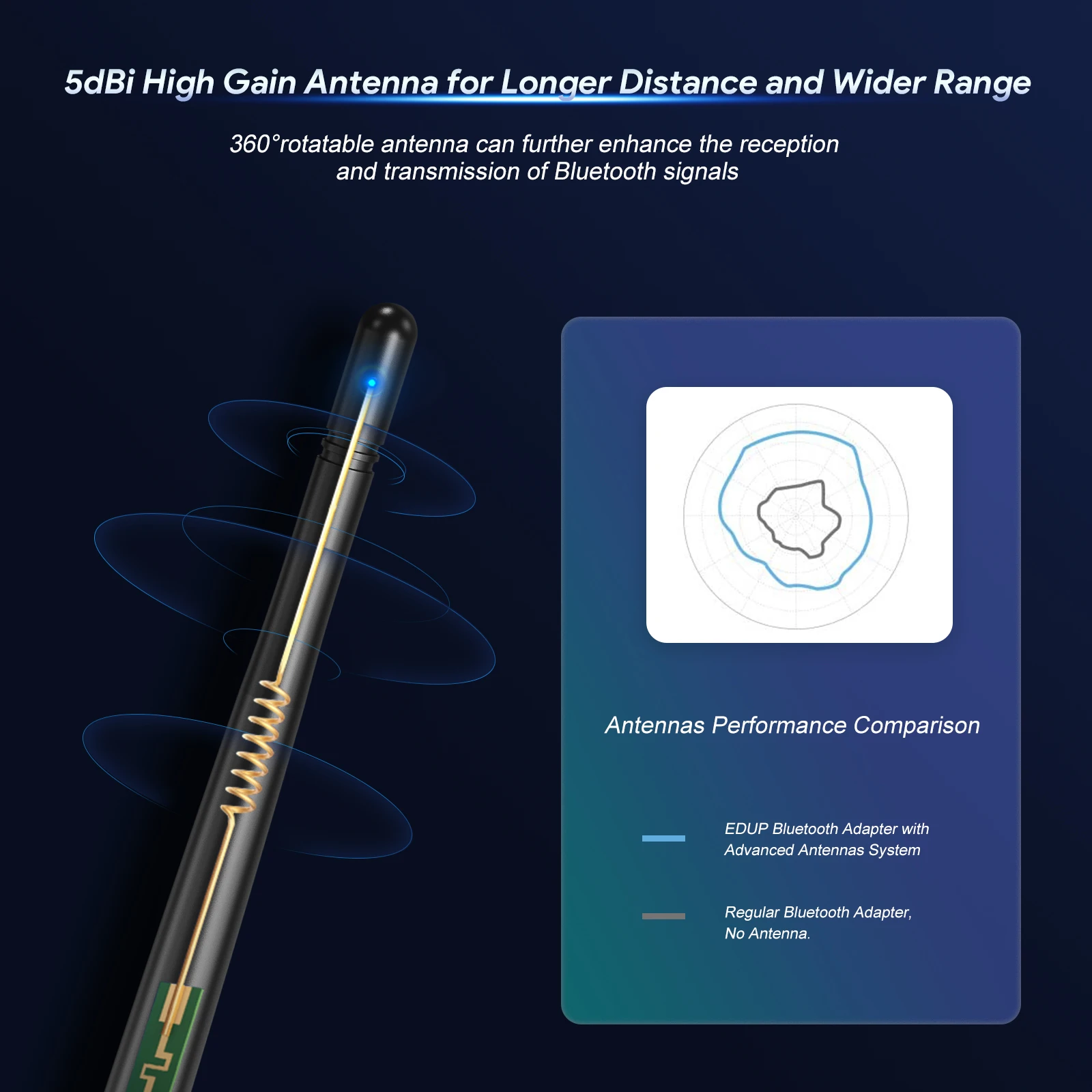 Comprar EDUP-Adaptador USB Bluetooth 150, receptor de Audio inalámbrico, transmisor, antena de 5dBi, Dongle USB para ordenador, 5,1 M