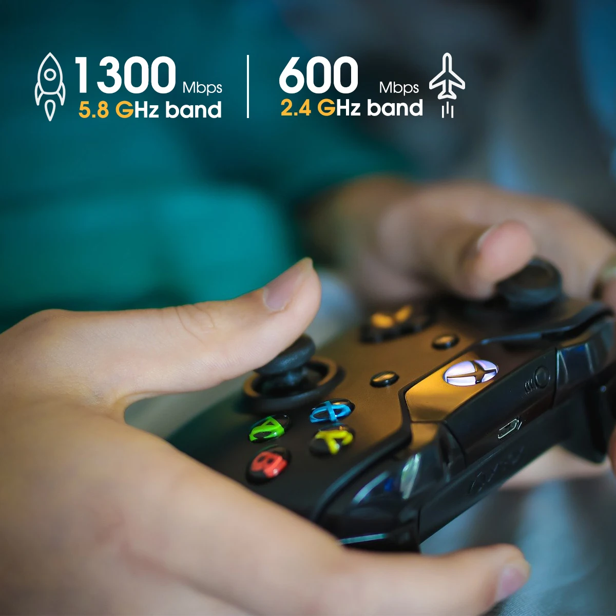 2. Admite bandas de frecuencia de 2,4 GHz y 5GHz, con velocidades de hasta 1300Mbps en la banda de 5GHz y de hasta 600Mbps en la banda de 2,4 GHz. Red opcional de doble banda, más rápida y agradable.