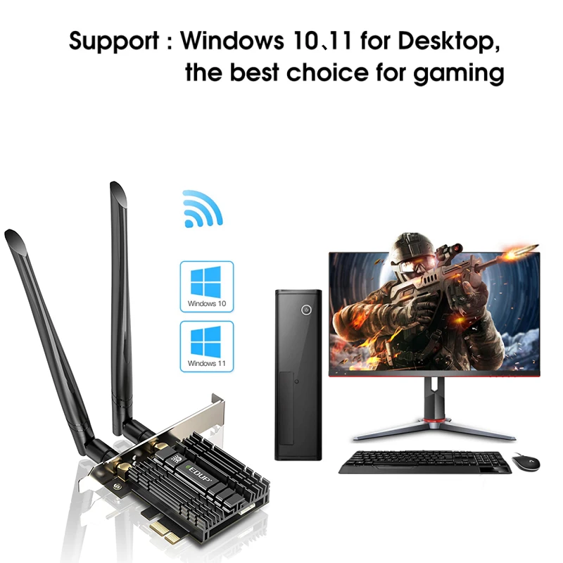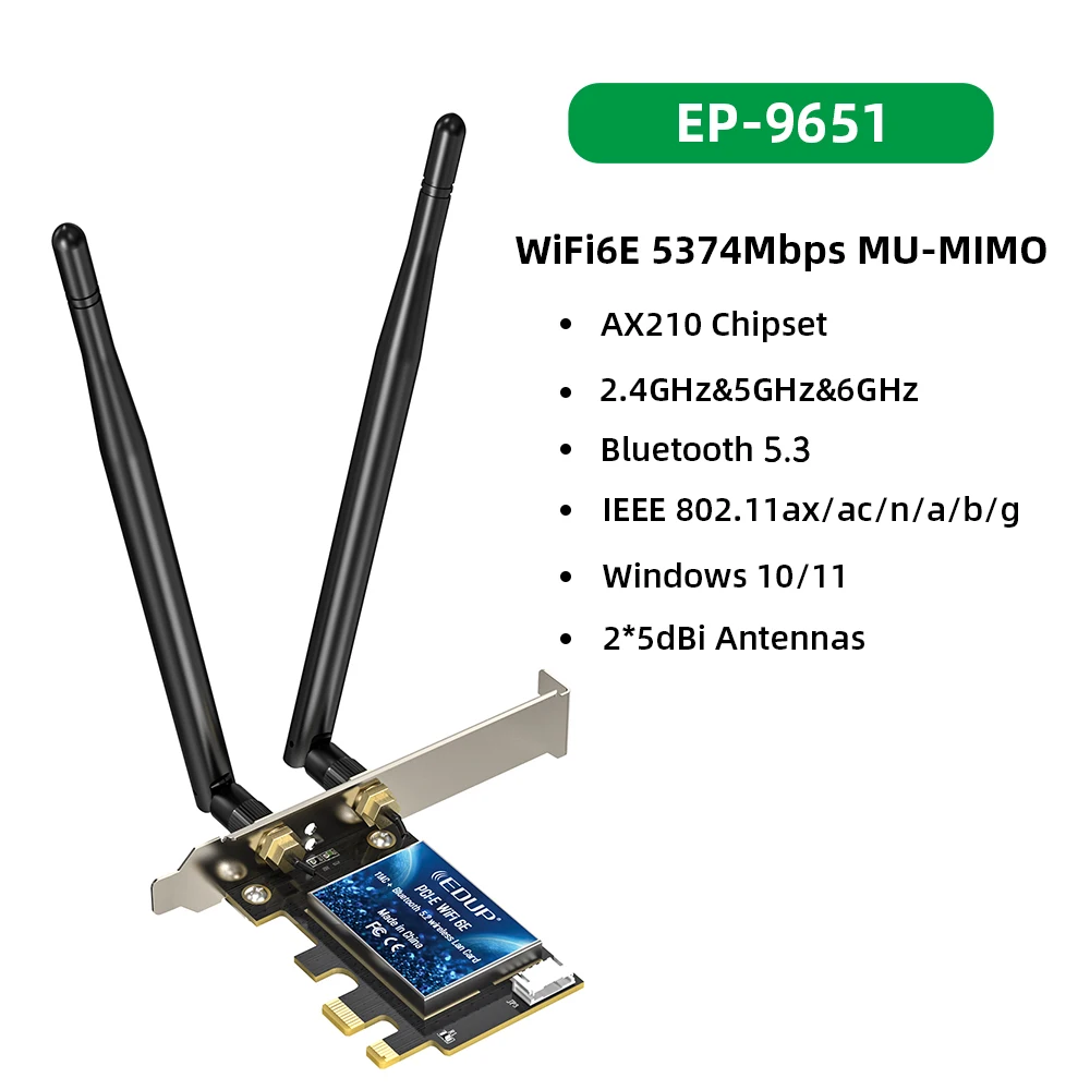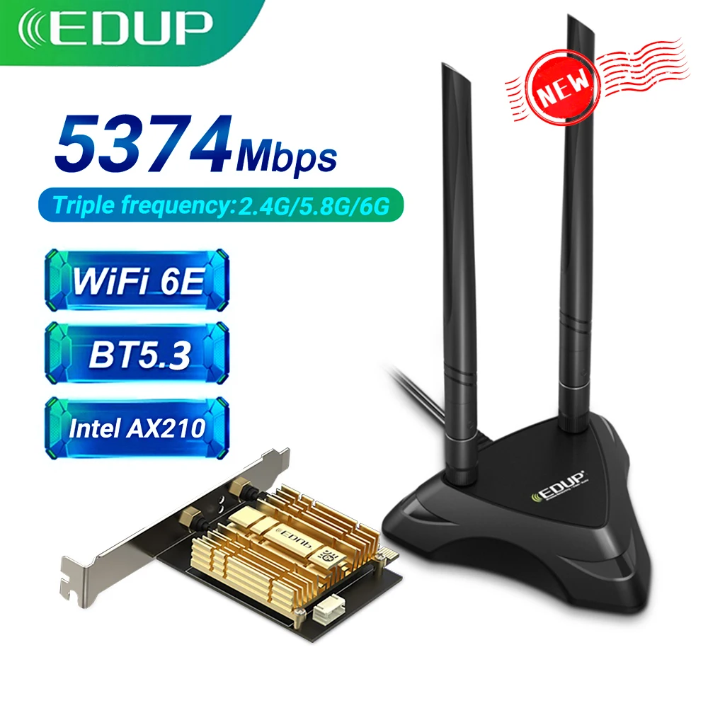 Comprar EDUP-adaptador WiFi WiFi6E Intel AX210 PCIE, tarjeta de red WiFi 5374Mbps, Bluetooth 5,3, 2,4G/5G/6GHz, PCI Express 802.11AX con MU-MIMO