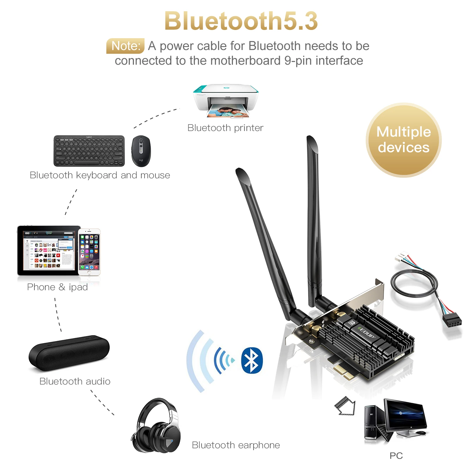 * Soporte Bluetooth 5,3: Conexión más rápida, más estable y mejor anti-interferencia.