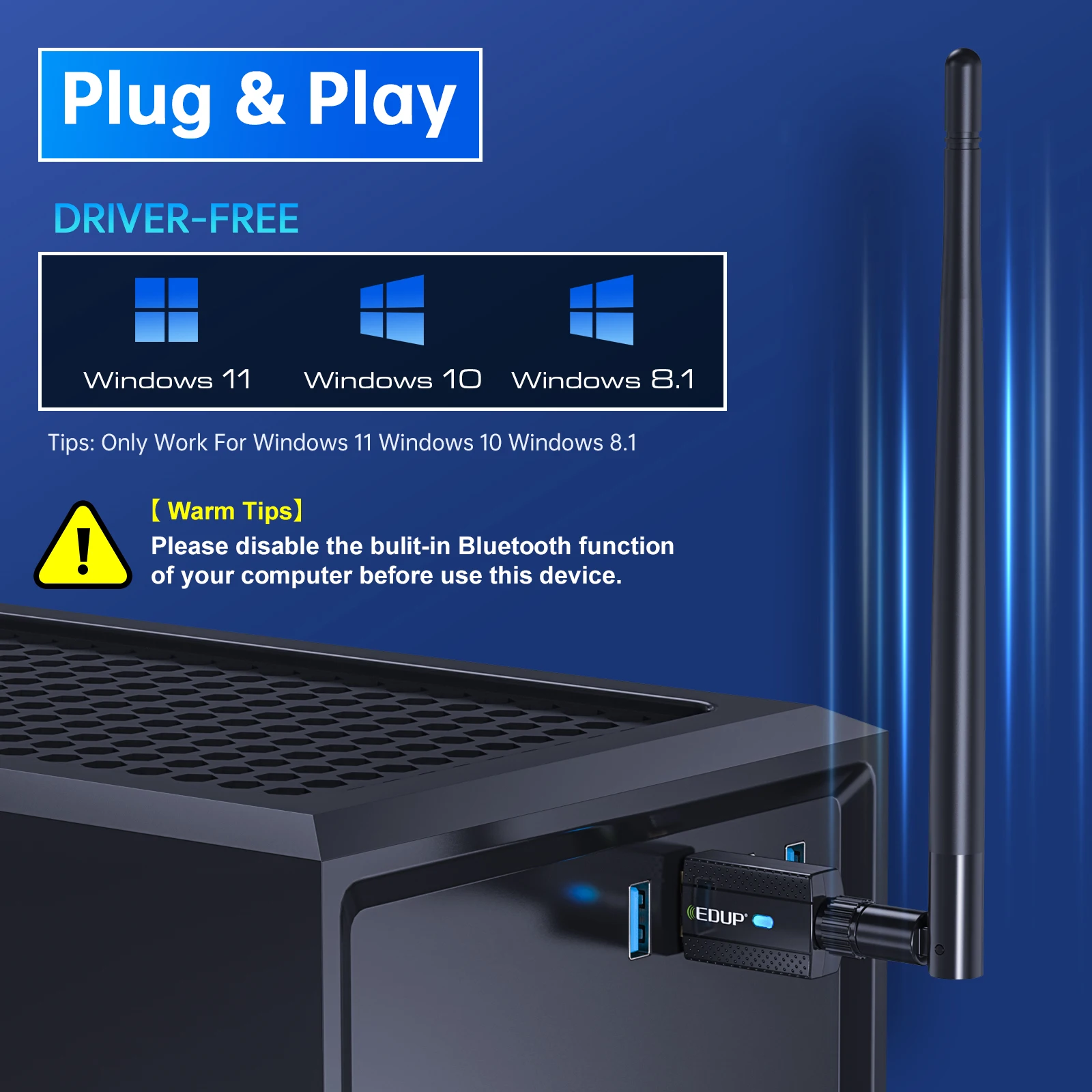 Adaptador USB EDUP Bluetooth 5,3 distancia de transmisión de 200 m para Windows 8.1/10/11 adaptador USB inalámbrico compatible con alta velocidad estable