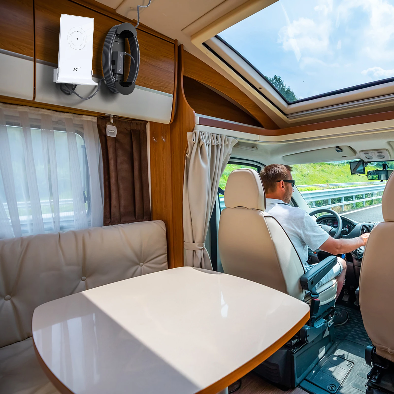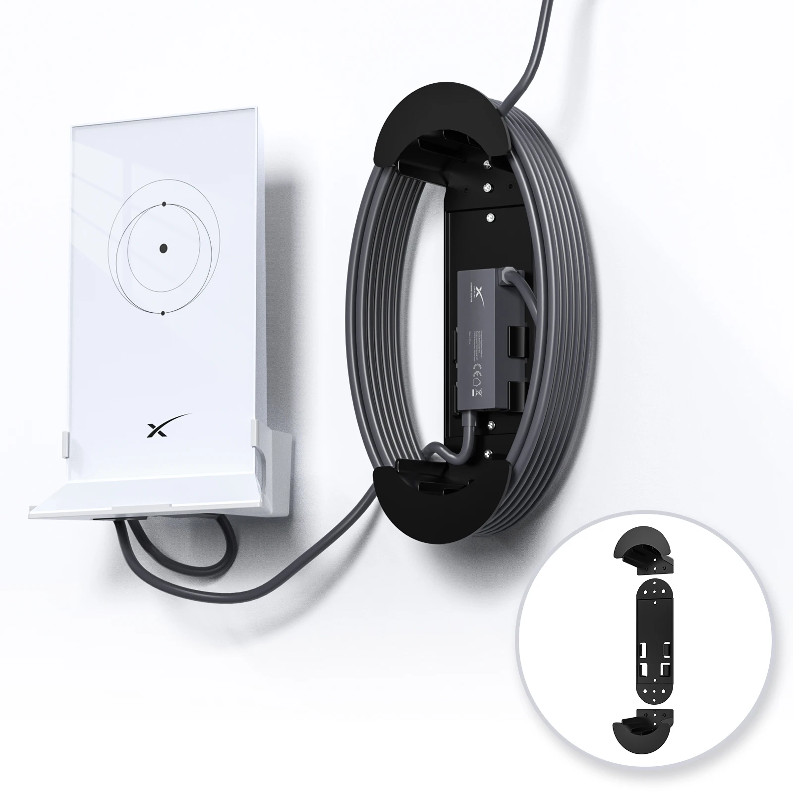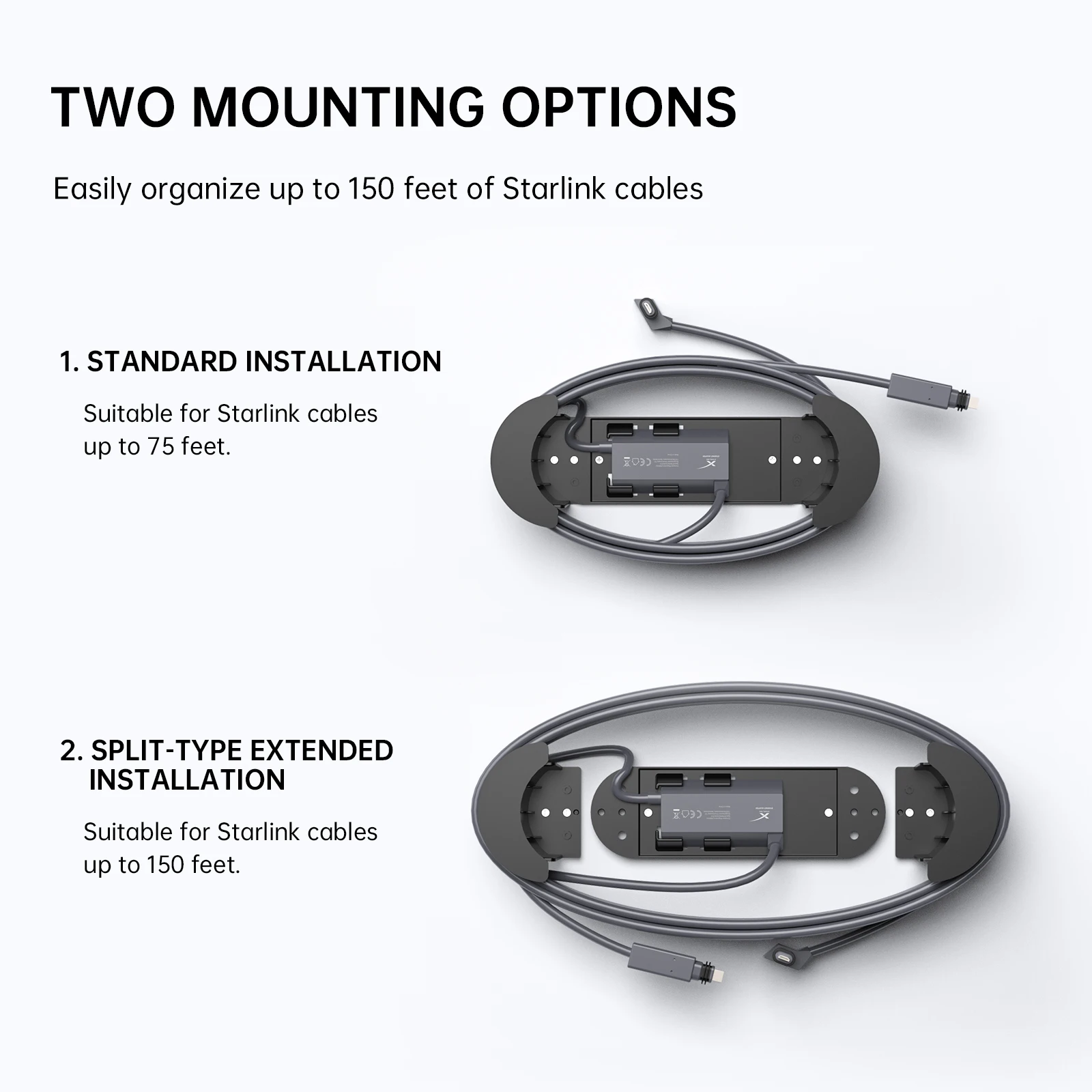 Práctico y ahorra espacio: Monte fácilmente el Caddy de montaje de cable Starlink en la pared, RV, SUV, yate o cualquier superficie adecuada. Diga adiós a los cables enredados en el suelo mientras mantiene su configuración ordenada y eficiente. El cable starlink 150 se puede envolver y ajustar cuidadosamente según sea necesario para una longitud óptima.