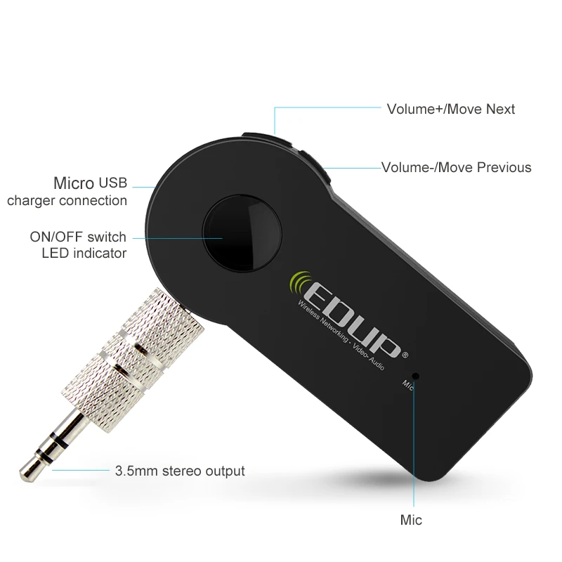 Comprar EDUP-receptor de música con Bluetooth para coche, conector de Audio macho a macho, puerto de carga USB, 3,5mm, Aux, Bluetooth 4,1